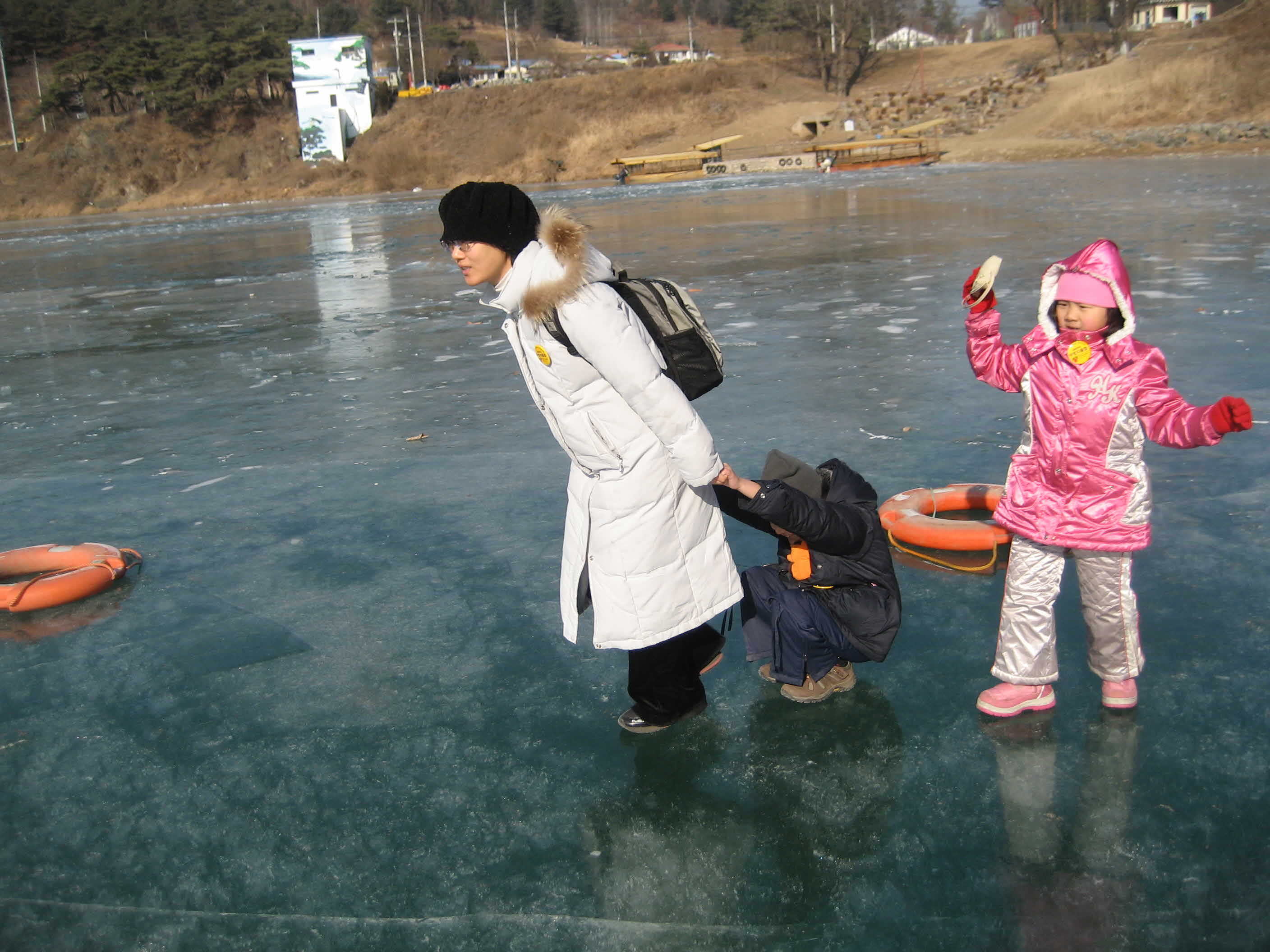 청령포가는길이예요 원래는 나룻배를 타고 건넌다는데 강이 얼어서 도강했어요 색다른 경험이였어요