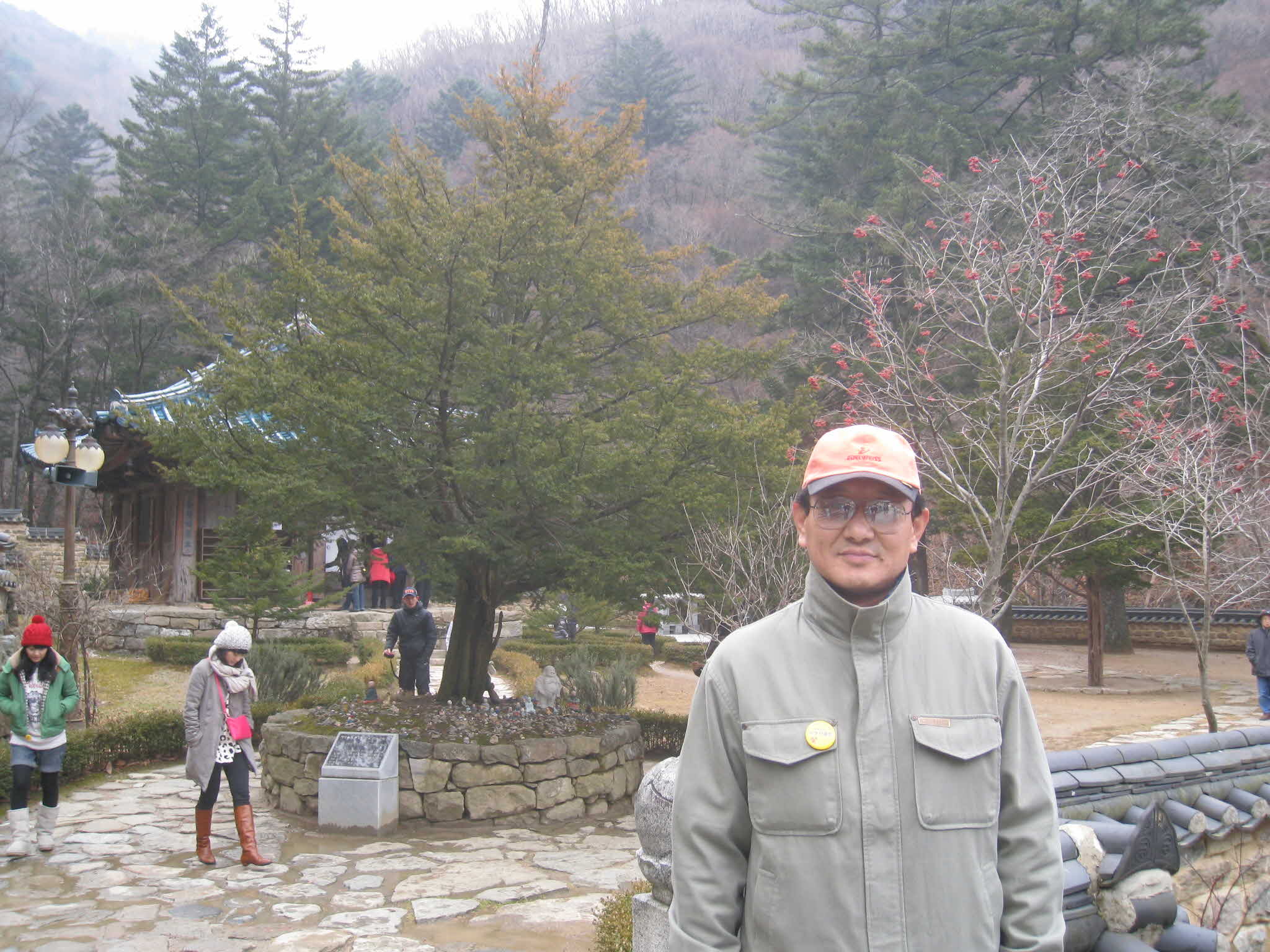 정암사의 주장자나무 앞에서 찍은 사진이네요