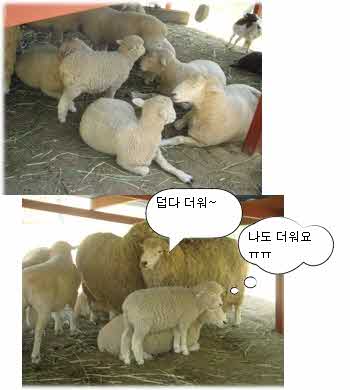 얘들은 이 더운 날씨에.. 이 많은 털을 가지고 있으면서.. 왜저리도 서로 붙어 있는걸까..