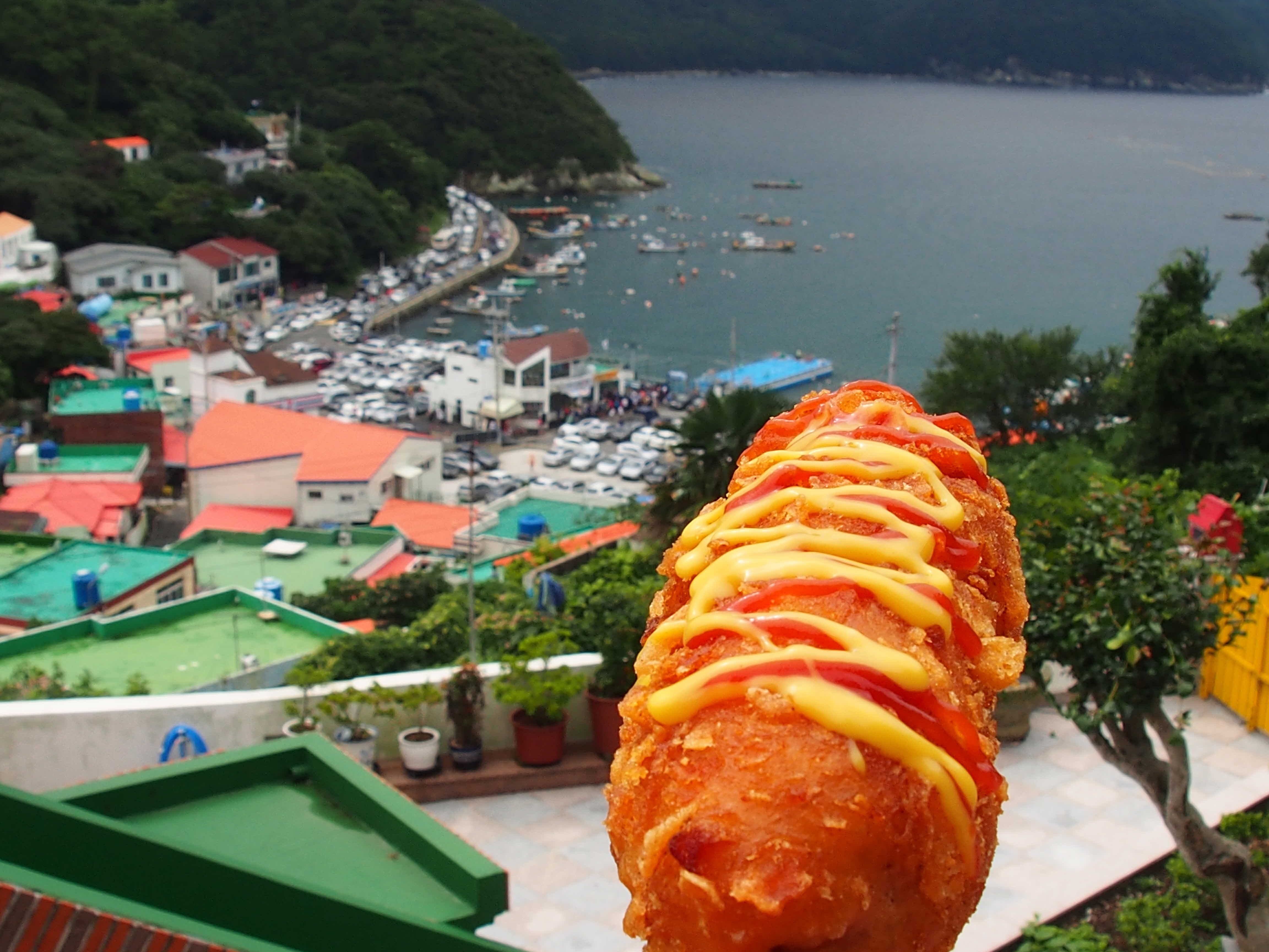 외도여행코스중 바람의 언덕으로 가는길에 감자핫도그가 있습니다.