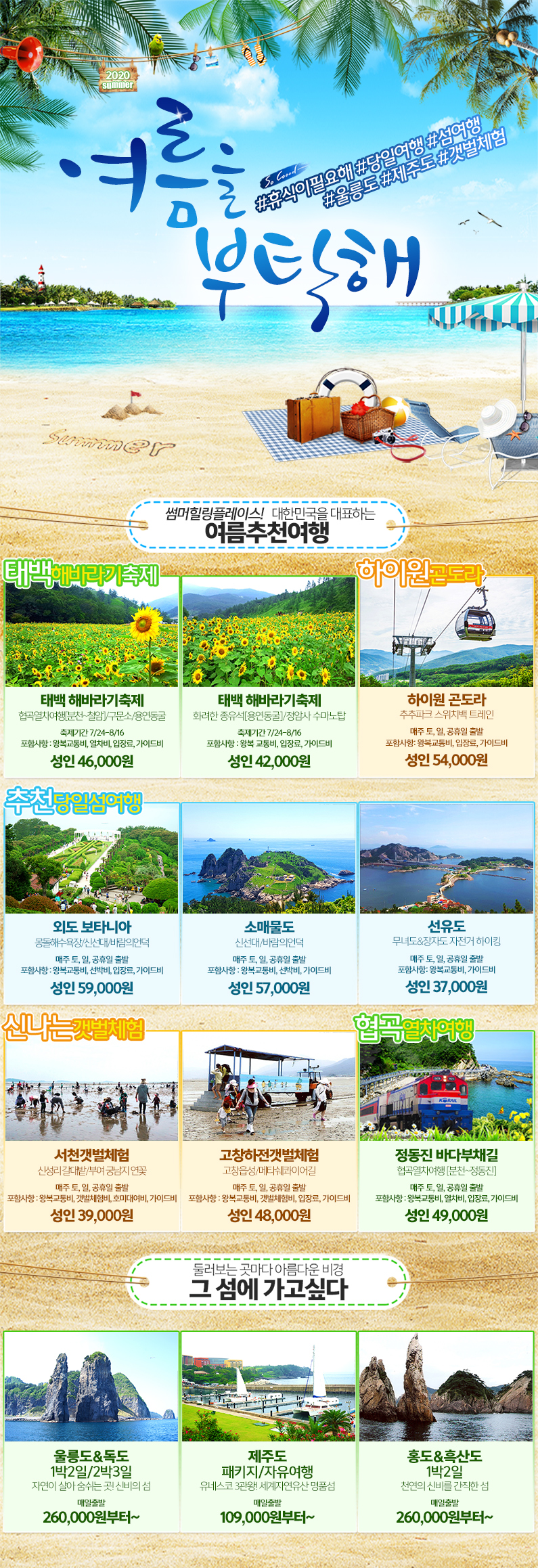 제목 여름을 부탁해~♬ 대한민국 힐링 플레이스 2020 #휴식이필요해 #당일여행 #섬여행 등록일 20.06.26 조회 1,212