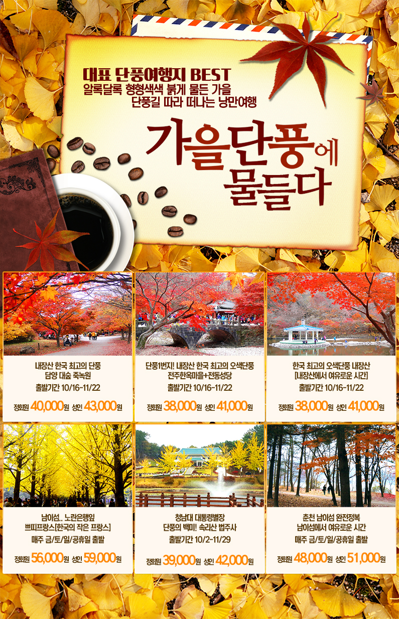 제목 대한민국 가을단풍에 물들다!! 2020 단풍여행지 BEST 등록일 20.09.25 조회 4,410