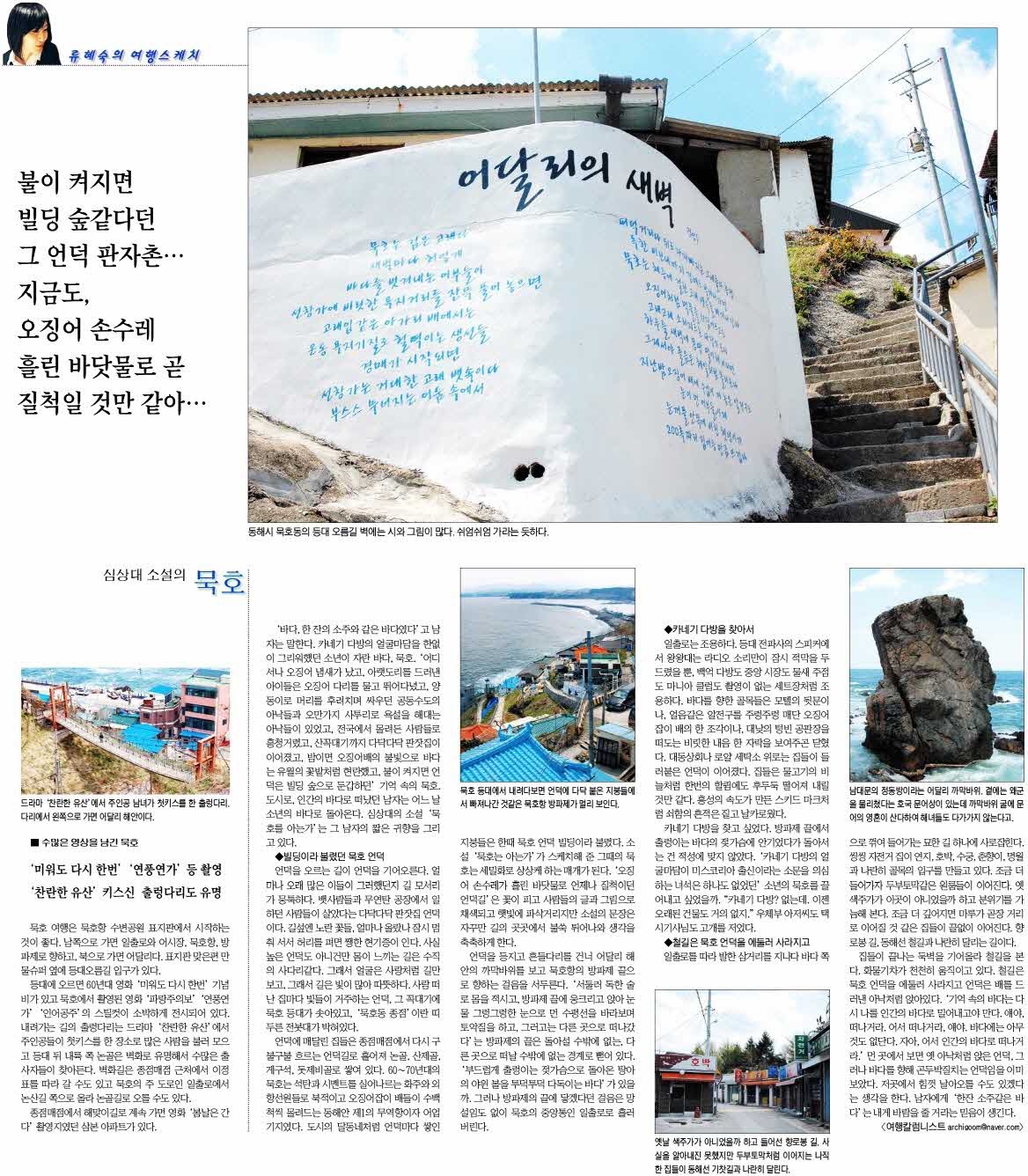 제목 동해 묵호여행[영남일보에 개재된 류혜숙의 여행스케치] 등록일 11.04.30 조회 1,700