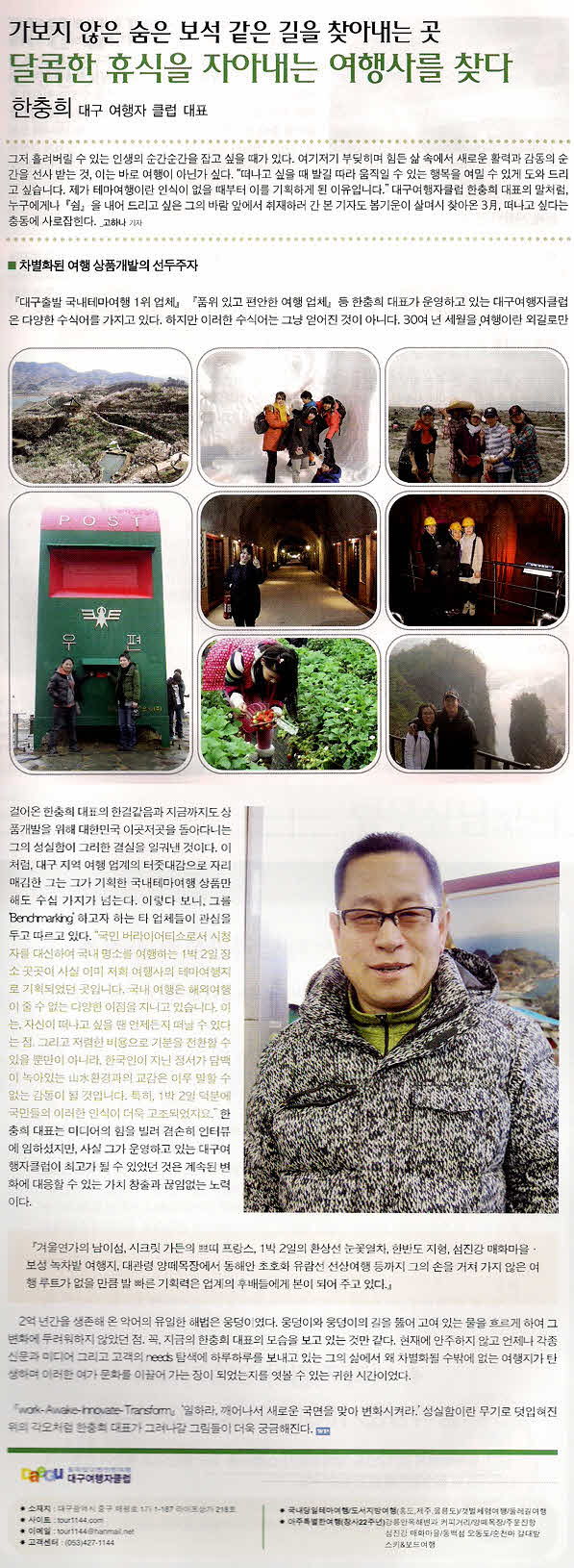 제목 [Weekly People 주간인물]에 개제된 대구여행자클럽 기사 등록일 12.03.14 조회 30,885