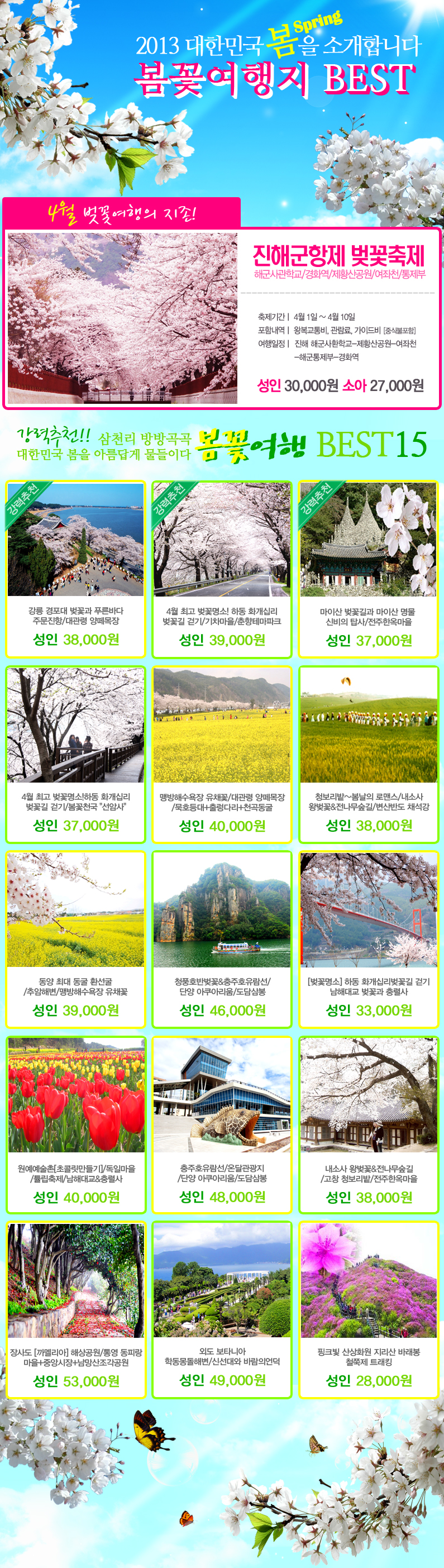 제목 대한민국의 봄을 아름답게 물들이다♬ 봄꽃여행지 BEST OF BEST 등록일 13.03.04 조회 1,436