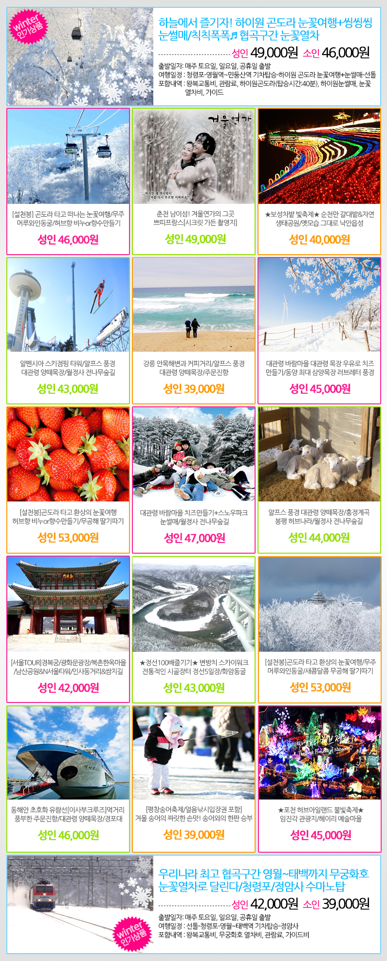 제목 찬바람 불 때 생각나는 대한민국 겨울여행지 GO GO 등록일 13.11.16 조회 2,024