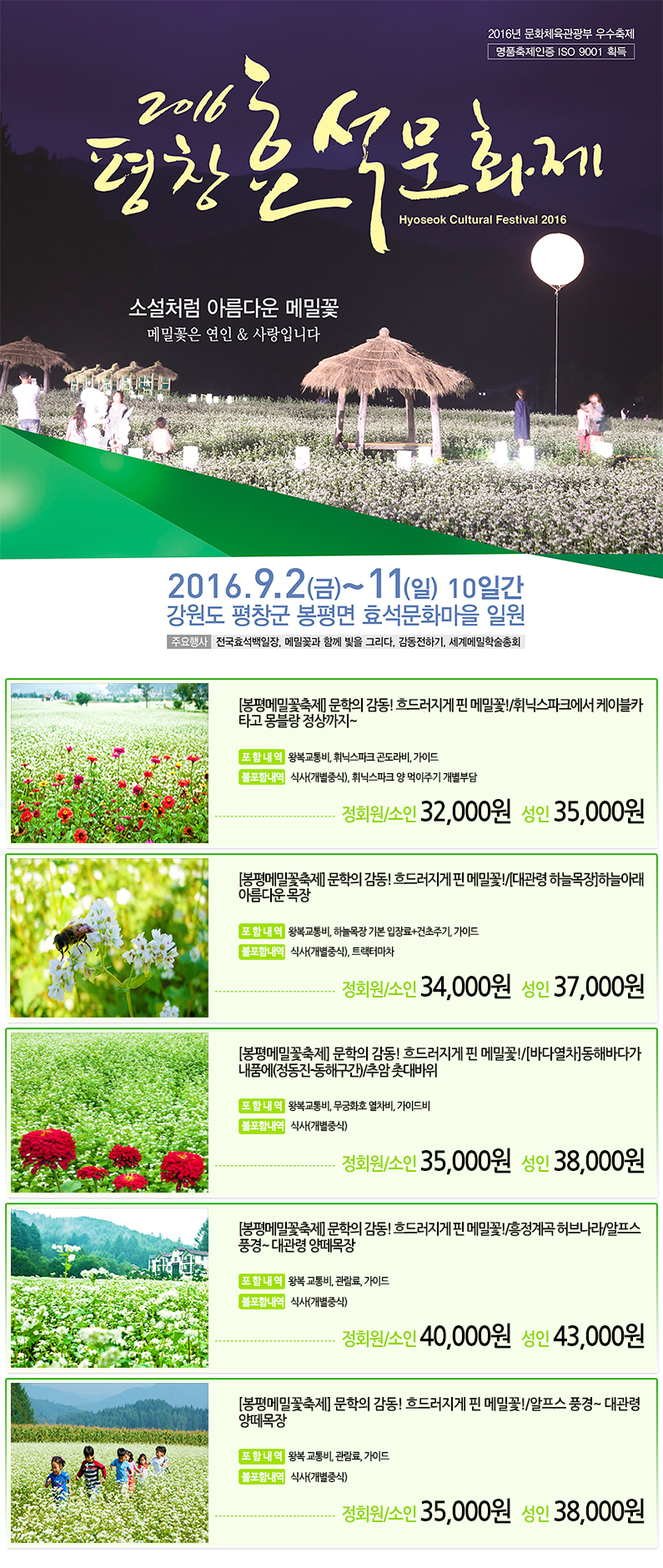 제목 흐드러지게 핀 메밀꽃 장관~♬소설처럼 아름다운 봉평메밀꽃축제 등록일 16.08.04 조회 5,339