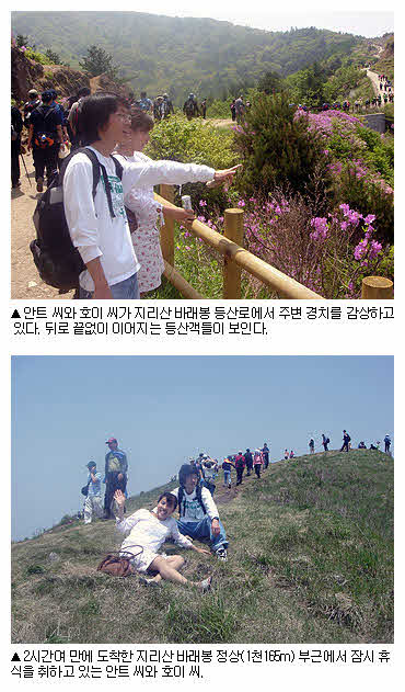 목적지는 지리산 바래봉(1천165m) 철쭉군락지. 지리산. 익숙한 지명인 것 같아 기억을 더듬어보니 얼마 전 친구 집에서 본 기념 손수건에 그려진 산이었다. 국립공원 1호로 지정된 유명한 산이라는 말을 듣고 꼭 한번 가고 싶었는데 때마침 좋은 기회가 찾아왔다. 대구여행자클럽(www.tour1144.com) 회원들과 함께 20일 오전 7시 대구 동아쇼핑 앞에서 출발, 오전 10시쯤 지리산 자락 운봉면 용산마을에 도착했다. 바로 등산을 시작했다. 수많은 등산객들로 붐볐고, 등산로 양 옆의 분홍빛 철쭉은 봄 기운을 만끽하게 했다. 베트남에선 전문 산악인들을 제외하곤 거의 등산을 하지 않는 편이다. 그래선지 한국의 등산문화가 부럽기도 했다. 베트남 북부 산악지역에는 높은 산이 있지만 남부지역은 낮은 평지인데다 대부분 국민들이 먹고 살기도 힘들어 등산은 꿈도 꾸지 않는다. 태어나 처음 해 본 등산치고는 마음이 상쾌했다. 주말 나들이 겸 한국의 산을 제대로 구경한 것 같아 기쁨은 두 배였다. 철쭉군락지와 바래봉 정상 인근에서 오손도손 모여 정성스레 준비해 온 점심을 나눠먹는 모습도 평화스러워 보였다. 점심은 김밥. 간편한 먹을거리로는 먹기에 딱 좋았다. 철쭉군락지 주변에서 신문지로 자리를 깔고 떡, 오징어 등과 함께 김밥을 두줄씩 먹었다. 베트남에선 도시락 문화가 발달돼 있지 않아 야외로 나가면 대부분 현지에서 먹을 것을 해결해야 한다. 함께 등산한 안트 선배는 산행도중 내내 인기를 끌었다. 너무 쉽게 생각했던 터라 꽃무늬 치마에 샌들을 신고 왔기 때문. 산 정상 부근에 올라가자 아저씨들은 "대단하다. 어떻게 그 복장으로…."라며 눈이 휘둥그래졌고 나이든 아주머니들은 "아이고, 아가씨가 치마입고 여기까지 올라왔네."라며 안타까운 눈길을 보냈다. 안트 선배는 "괜찮아! 다리가 좀 아프긴 하지만 한국에서 제일 유명한 지리산의 좋은 경치를 구경했으니까 이 정도는 힘들어도 참아야지."라며 너털웃음을 지었다. 2시간 30분만에 바래봉 정상에 올랐다. '바래봉'이라 적힌 푯말 앞에는 사진을 찍으려는 사람들로 발디딜 틈이 없었다. 너무 사람들이 많아서 사진을 찍기위해 한참을 기다려야 했다. 산 정상을 밟은 기분을 말로 표현할 수 없을 정도였다. 이렇게 높은 산을 오른 것자체가 첫 경험이었기 때문에 내 자신을 이기고 산꼭대기에 올랐다는 성취감으로 짜릿했다. 하지만 내려오는 것은 또다른 고통의 시작이었다. 다리에 힘이 풀려 중심을 잡기가 힘들었기 때문. 하지만 샌들을 신고 온 안트 선배 때문에 다리가 아프다는 이야기를 할 형편도 되지못했다. 하산한 다음 행선지는 신라시대 옛 고찰인 실상사였다. 주변 풍경이 인상적이었다. 실상사는 계곡을 지나 마을같은 조용한 평지에 위치한 아늑한 정원같은 절이었다. 크지는 않았지만 신비하고 고즈넉한 느낌이었다. 가운데 부처님과 염라대왕 등을 모시고 있는 산신전은 볼수록 흥미로웠다. 원목으로 지은 집이고 지붕까지도 나무로 섬세하게 조각했다. 화려하지는 않지만 나무로 지은 절 건물과 어우러져 한국적인 옛 정취를 물씬 풍기고 있었다. 오른쪽 약사전에 있는 커다란 돌 부처상은 조각 모양이 베트남과 비슷했다. 여러 국가로 전파된 불교도 건물양식, 예불 등의 방식은 다르지만 기본적인 불상형태는 유사하다는 걸 알 수 있었다. 8월이면 베트남으로 돌아간다. 그 전에 지리산 바래봉과 실상사의 아름다운 모습을 가슴에 담아둘 수 있어 행복했다. 지리산 철쭉은 '원더풀 코리아' 그 자체였다. 트랑 황 호이(22.영남대 한국학과 교환학생) 씨. |