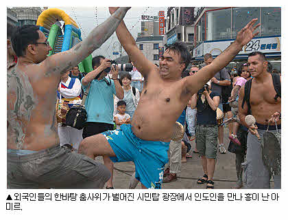 연일 폭우가 쏟아붓던 지난 16일 대구여행자클럽(www.tour1144.com) 일행과 함께 충남 대천해수욕장 ‘보령 머드축제’ 여행길에 올랐다. 온 나라가 비 피해로 난리였다. 하지만 머드 축제는 비가 조금 내리면 더 성황을 이루기 때문에 오히려 축제엔 좋은 날이었다. 파키스탄 역시 해안가가 있지만 진흙으로 온 몸을 마사지하고 해수욕을 즐기는 곳은 없기 때문에 도착할 때부터 흥미로운 듯 싱글벙글했던 아미르. 오전 11시쯤 대천 해수욕장에 도착, 수영복으로 갈아입고 곧장 해변으로 달려갔다. 입구에는 머드가 잔뜩 담긴 그릇을 둘러싸고 남녀노소 할 것 없이 온 몸에 바르느라 정신이 없었다. 그는 “미끌미끌한 느낌이 좋으며 온 몸에 머드를 바른 뒤 바다로 뛰어드는 기분은 짜릿함 그 자체다.”고 즐거워했다. 참가자들 대부분은 피부비용을 위해 온 젊은 여성들. 그 틈에서 기분이 더 좋아진 아미르는 바닷물로 머드를 씻어내고 밖으로 나오다 뜻하지 않은 축제 현장과 맞닥트렸다. 머드축제가 열린 대천 해수욕장은 축제 참가자 2명 1중이 외국인일 정도로 다양한 인종이 모인 한국 내 국제적 명소. 특히 해수욕장 시민탑 광장은 한국인 풍물패가 흥겨운 소리를 연주하면 세계 각국에서 온 외국인들이 나와 한바탕 춤사위를 벌이고 직접 전통악기를 체험해보는 축제의 장이었다. 풍물패에서 징을 치던 악공이 그에게 악기를 건네주자 그는 기꺼이 축제 현장에 참여했다. 장단에 맞춰 징을 울리며 어설프지만 나름대로 한국 전통춤을 흉내내기도 했다. 구경꾼들이 워낙 많아 쑥스러워하던 차에 딸 아이를 안고 춤추러 나온 인도인을 만났다. 그는 춤을 추며 통성명을 하더니 곧바로 파키스탄 전통춤에 빠져들기 시작했다. 주변의 시선은 온데 간데 없고 둘은 한쪽 다리를 들어 서로 엮은 듯 빙글빙글 돌며 역동적이고 흥겨운 춤 한마당을 만드는데 한몫 했다. 10여 분간 신나게 춤을 춘 뒤 그는 “파키스탄에서는 축제 때가 되면 온 마을 주민들이 전통춤을 춘다.”며 “한국 역시 흥을 아는 민족”이라고 엄지 손가락을 들었다. 한가지 아쉬웠던 것은 유료 샤워장의 폭리였다. 사용료 2천 원을 받으면서도 수건 대여료 1천 원, 비누 5백 원을 추가로 받아 바가지 요금이라는 인상을 지울 수 없었던 것. 아미르는 “1천 원 정도가 가장 적당한 가격”이라며 “관광지에서 바가지 요금은 빨리 없어져야 한다.”고 지적했다. 한국여인과 결혼한 그는 아내와 함께 오지 못한 것을 못내 아쉬워했다. 돌아오는 길에 "다음번에는 꼭 아내와 함께 오겠다."고 다짐했다. "오늘은 한국에 온 뒤 가장 기쁘고 즐거운 날이었다."는 그의 표정에서 한국에 대한 따뜻한 애정이 묻어나는 듯 했다. 글.사진 권성훈기자 cdrom@msnet.co.kr |
