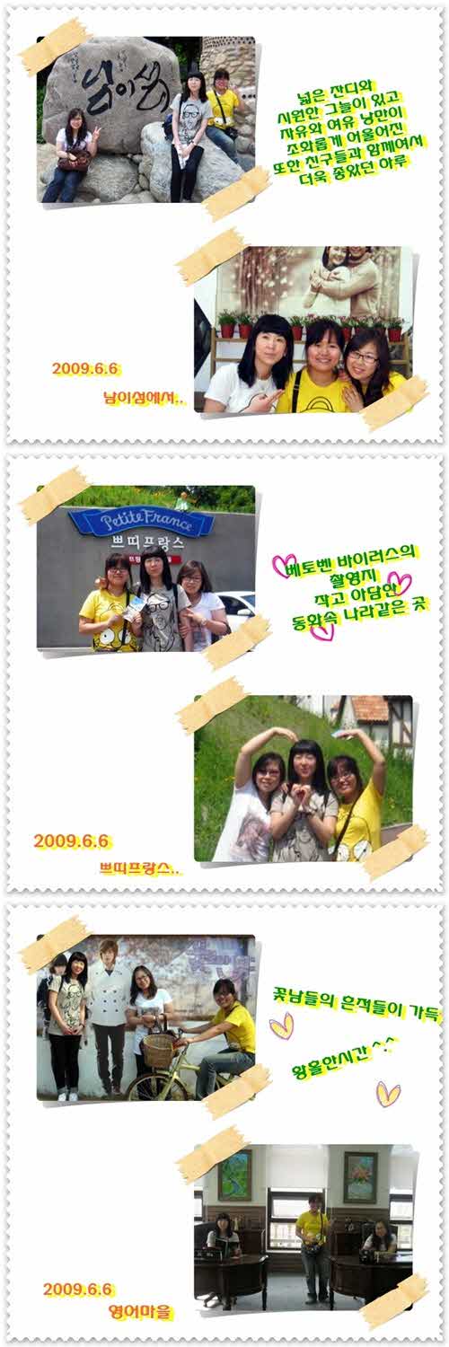 | 제목 | 6월 6일 남이섬 & 쁘띠프랑스 & 영어마을 | 등록일 | 09.06.09 | 조회 | 575 |