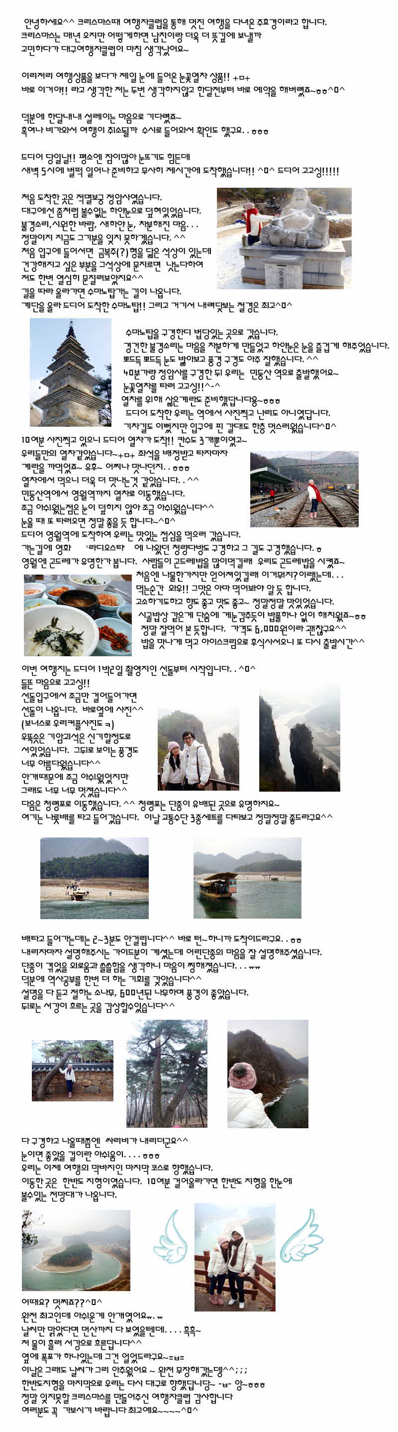 제목 [X-MAS] 최고의 여행지 칙칙폭폭~♬환상선 눈꽃열차! 영월 명소 등록일 09.12.29 조회 475