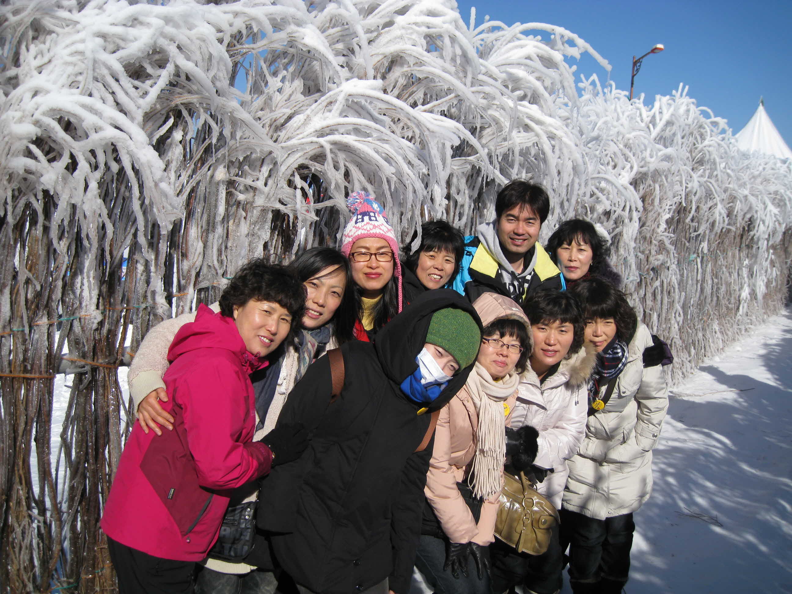 직장동료 10명이 시간 맞춰서 어디 여행가기가 쉽지 않았는데 일단 날짜를 정해놓은 다음에 장소는 차후에 정하기로 했는데 실장님을 통해 여행자클럽을 알게 되어서 가입한 후 장소를 물색하다가 가격도 저렴하고 다들 양떼목장을 제일 가고 싶어 하고 대관령 눈꽃축제도 16일부터 시작이라서 선택을 했는데.. 탁월한 선택이였다고 생각한다. 새벽?에 출발해서 가는거라서 일찍 못 일어날까봐 걱정했는데 다행이 늦은 사람 없이 10명 모두 출발할 수 있었다. 미리 간식거리(과자,음료수,귤, 사탕, 껌 등)와 김밥을 준비해서 갔다. 다행이 여행가는날 날씨가 춥지 않아서 다니기에 좋았다. 휴게소에서 아침을 먹고(20분밖에 시간을 주지 않아서 허겁지겁 먹기 바빴다) 도착한 대관령 눈꽃축제...얼음조각품들과 사진을 엄청 많이 찍고 시간이 많이 남아서 얼음썰매도 타고.. 어린 동심으로 돌아간 느낌..ㅎㅎ 점심으로 황태해장국하고 황태찜을 먹고 술한잔..ㅎㅎ 오랜만에 온 여행이라 기분이 좋았다. 점심 먹고 출발해서 도착한 양떼목장.. 예전에 한번 와 봤지만 그래도 좋았다. 산을 잘 못타는데 목장길을 따라 한바퀴 정상? 까지 돌아내려오니 혼자 힘들었다. 다른 일행들은 힘들지도 않은데..아무래도 운동부족..ㅋㅋ 가슴이 뻥 뚫린 느낌... 내려오는길에 그네도 있어서 함 타고.. 이제 양들을 만나러 갔다. 어린양들이 얼마나 귀여운지....건초도 너무 잘먹고... 내려오는길에 여행 기념으로 양 폰줄도 10개 샀다. 양떼목장을 떠나 도착한 월정사는 전나무가 많았다. 길이 너무 평탄해서 마음에 들었다.. 전혀 힘들지도 않고.. 법당 안에 들어가서 절도 하고 나와서 사진도 찍고.. 나름 피곤했지만 즐거운 여행이었다.. 차도 안 밀려서 일찍 대구에 도착도 하고..같이 간 사람들이 탑승시간을 너무나도 잘 지켜주어서... 가이드께서 사진도 많이 찍어 주고.. 가기전에 나름 걱정많이 하였지만 무사히 잘 갔다오고 나니 다음에 또 기회가 된다면 10명 다같이 한번 더 여행가고 싶다.