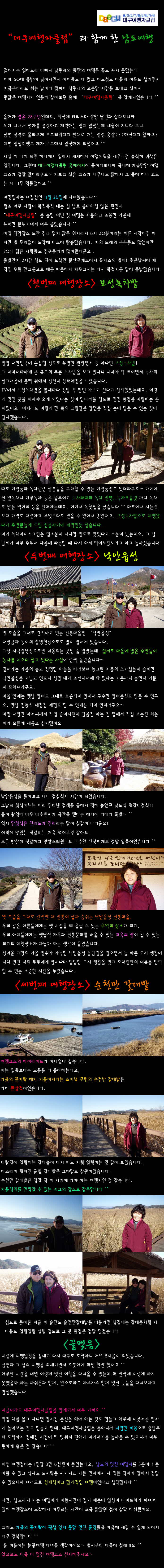 제목 ★★ "대구여행자클럽"과 함께 한 남도여행 ★★ 등록일 10.11.29 조회 564