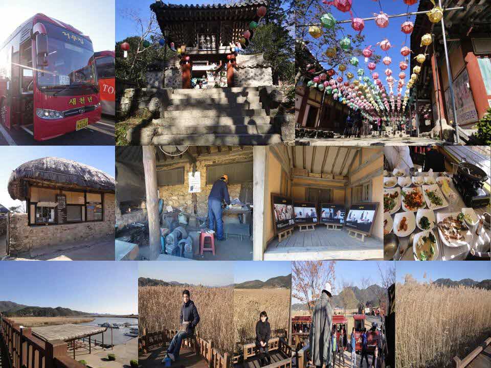 남친이와 오랜만에 주말여행을 계획하다 여행자클럽을 알게되어~ 고민끝에 순천으로 여행지를 정했다 . 6시40분에 버스타고 10시쯤에 선암사에 도착하여 나의 느린걸음으로 20분 조금넘게 걸으니 선암사가 보였다. 날씨가 너무 추워 올라가는게 힘들었지만 도착하니 무료커피도 있고~ 가이드분이 너무친절히 버스에서 설명을 미리 해주어 하나 하나 짚어가면 남친이와 빠짐없이 구경을 하였다 . 다둘러보고 내려가는 길에 가이드분이 어디 어디 가보셨어요 ? 하면서 하나하나 짚어 주는게 너무 세심하였다 . 혹여나 이 멀리 까지와서 하나라도 빠드릴가봐 ㅠㅠ 사진도 직접 찍어주시고 ^^ 사진속 나는 돼지같아 .....ㅠㅠ ㅠㅠㅠㅠㅠㅠㅠㅠ 우울돋네 낙안읍성에서는 중식의 시간이 주어진다 남친이와나는 시간을 잘못들고 미친듯이 빠른걸음으로 ㅠ 구경을하였다 ㅠ 결국 나중에 삼십분넘게 남은거 알고 완젼 ㅠㅠ 허무했지만 ㅠㅠ 고등학교1학년때 왔는데 지금 팔년이 지난 지금 다시가보니 새로웠다 낙안읍성은 속속히 돌아보면 시간이 꽤나 걸린다 남친이와 나와 도시락 싸올걸후회하면서 구경했다. 주변에 식당가도 별로없었으면 꼬막정식을 점심먹고 버스출발~~ 슝슝 한숨자니 부산처럼 다누비 열차와 비슷한것이 있는데 갈대만카페에서~ 먹은 팥죽은!!!!! 부산에 국제시장에서 먹는 팥죽과 비슷한 맛이며 계란은 그럭저럭 갈대에 쪘다고 하는데 사실 돈이 조금 아까운 맛이였다 . 예정표와는 달리 한시간 가까이 일찍 도착하였는데 여행사를 통해서 여행을 간다고 하니 남편분 남친분 운전하기 힘들고 기름값비싸니