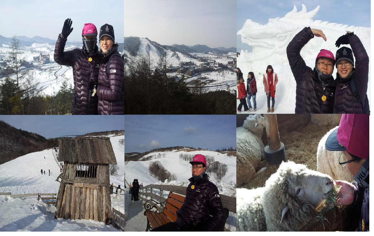 바로 온 국민이 염원했던 2018 평창동계올림픽의 개최 예정지죠. 이곳저곳 많은 시설이 들어서고 있는 곳이었어요. 특히 우리는 여행 코스에 포함된 모노레일을 타고 스키 점프대의 최정상까지 올라갔어요. 쨔~잔~