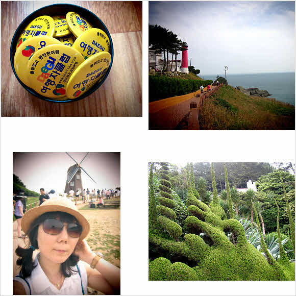 외도였습니다. 그래서 오늘 여행은 추억여행 비슷한 느낌으로 출발했지요 원래 공휴일에 밀린 업무를 할까 생각했는데 아무리 생각해도 좀 억울해서 주말에 무리하여 모두 처리하고 급하게 월욜날 전화해서 예약을 했답니다. 오늘 우리의 버스는 출고한지 채 1주일이 안된 아주 쌔 차였습니다.. 깨끗한 관광 버스에 상냥한 가이드까지 있으니 좀 더운게 문제가 될 리 없지요. 오늘의 바다는 잔잔.. 해금강 구경 자~알 하고 외도가서 치마자락 날리며 사진 찍기에 바빴네요. 지난번에 왔을때 너무 인파가 많아서 어떻게 찍어도 사람들이 풍경에 바글 바글했는데 오늘은 한 템포 느리게 걸으면 살짝 인파가 한산한 틈을 노릴수도 있더군요. 사실 외도가 5월이 더 알록 달록 하니까 녹음이 우거지고 몹시 더운 6월은 상대적으로 덜 붐비는 건가...싶기도 했습니다.. 그러나 가이드님 말씀이 여름엔 몇 시간씩 줄을 서야 배표를 구한다니 외도의 인기는 ..식을 줄 모르네요. 그리고 학동 몽돌 해변에서 맛난 멍게 비빔밥을 쓱싹! 역시 찾아가는 길이 예전에 찾았을때와 달리 덜 붐벼서 구조라항에서 금새 도착했다는 점도 좋았던 것 같아요. 바람의 언덕에서 모진 바람 한번 맞고 유자빵 사서 버스로 고고씽... 시간배분도 집결 시간도 언제나 깔끔한 .. 여행입니다. 여행자 한분 한분이 모두 에티켓이 좋으신거 같아요.. 앞으로도 좋은 상품 기대할께요.. 구애정 가이드님(ㅎㅎ) 사진 찍어 주셔서 감사해요~~ (혼자 가면 역시 여자 가이드님이 사진 찍어주는게 편하네요~) |