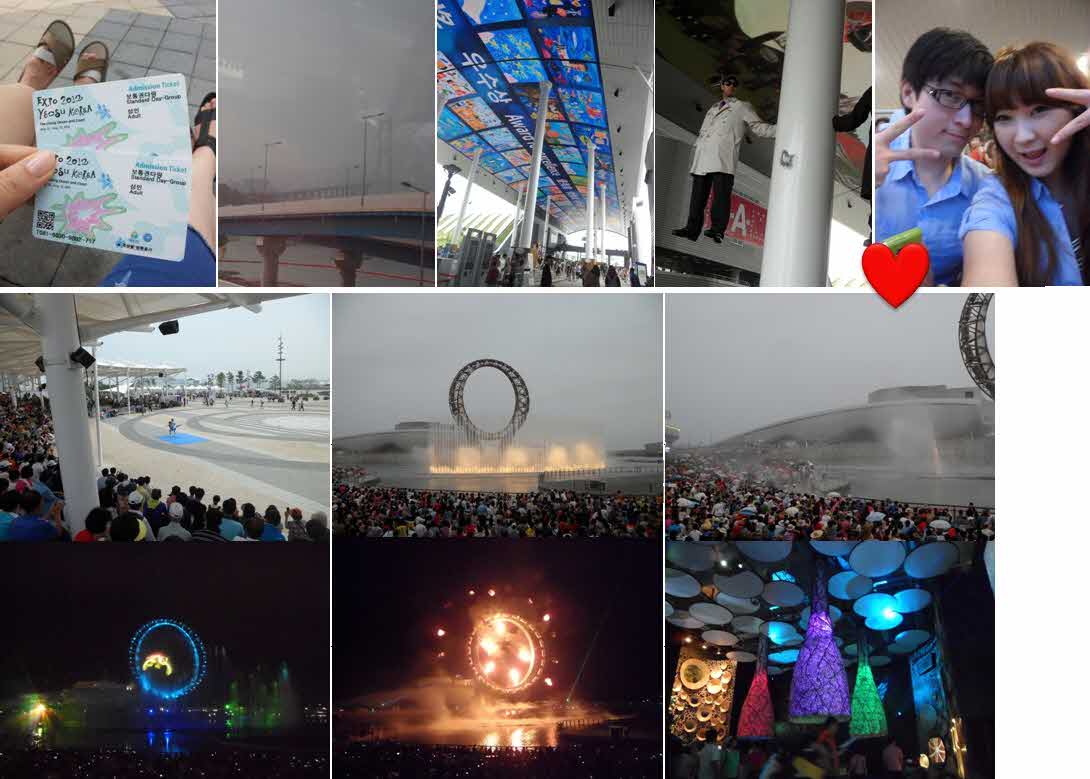 3시간 걸리는 거리지만, 오늘따라 시간은 왜그렇게 잘 흘러가는지..너무 행복했습니다. 처음으로 눈에 보인것은 바로, 여수의 대교,,이순신대교였습니다. 가이드님이 잊어버리면 안된다고 신신당부를 하며, 주신 "입장권"을 들고 입장하는데, 입장권이 꼭, 교통카더처럼 되어있어서 가지고 다니기도 편리하고 디자인도 이뻣습니다. 여수엑스포의 규모에 한번 놀랐습니다. 아쿠아리움을 정말 꼬옥~보고싶었는데,줄이 너무 길어 포기했습니다.ㅠ 예약을 하지 않고 가시면 하루종일 줄 서야 됩니다.ㅠ특히, 아쿠아리움은 3~4시간 기본입니다. 비회원이요 제가 간날이 최다인원이 온 날이라고 하네요.ㅠ 뉴스에 나왔어요 꼭 봐야하는곳은 아쿠아리움과 국제관입니다. 그러다 해상쇼를 보는데 늦게 가서 그런지 자리가 없었습니다. 가장 하이라이트는 바로 "빅오쇼"입니다. 하지만 빅오쇼는 대단했습니다. 너무 재미있는 하루였습니다. 감사합니다^^ 밤늦게까지 운전해주신 운전기사님 감사합니다. 다음에 또 함께 했으면 좋겠습니다^^ |