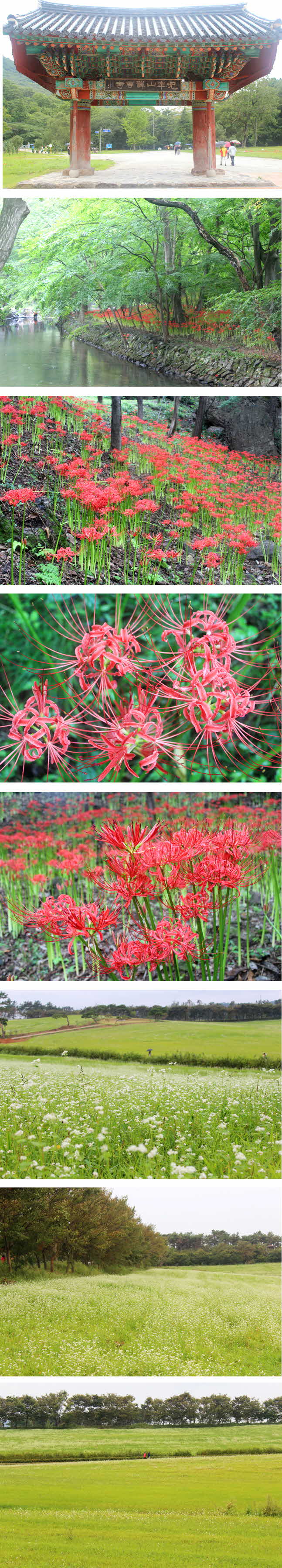 태풍 "산바"가 북상중이라 새벽에 대구에도 비가 왔었죠ㅜㅜ 그런데..고창에 도착해서는 비가 오지 않았다는 ^-^ 버스에 내려서 여행다닐때는 비가 그쳤다가.. 비가 오더라도 약하게 내리고 저희가 버스타고 이동하면 또 신나게 비가 내렸어요~! 전날 강원도에서의 기운이 전라도에서도 통했었다는... ㅎㅎㅎ 꽃무릇 꽃이 하루전날만하더라도 현지에서 꽃이 별로 안폈다고 너무 기대하지말라고 하셨는데.. 16일날 현지에 도착했는데 꽃무릇 꽃이 완전~! ★.★ 생각보다 많이 펴있어서 그날 오신 손님들도 저도 굉장히 좋아했었답니다~♥ 주차장에서 부터 도솔암까지 도솔천을 따라 쭈~욱 꽃무릇 군락지랍니다~! 선운사가 왜 꽃무릇으로 유명한 곳인지 직접 눈으로 확인할수있어요! ㅎㅎㅎ 선운사에서 이어 다음 코스는 고창학원농장.