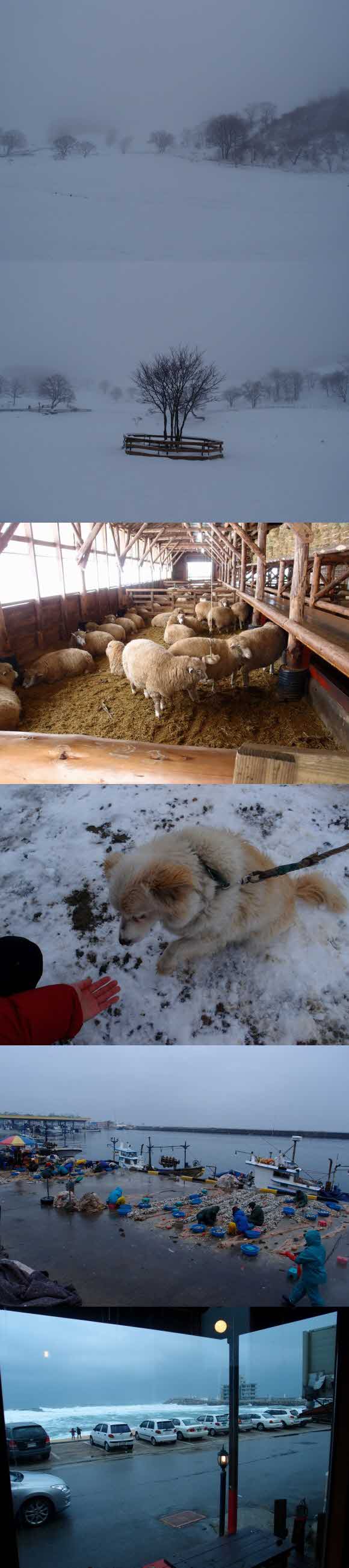 대구에서 멀어질수록 설레고 기대되는 마음은 점점 커졌고 강원도에 가까워질 수록 차창밖은 새하얀 눈으로 뒤덮여 달리는 내내 연신 감탄을 하였습니다. 3시간 반 여를 달려 대관령 양떼목장에 도착하였습니다. 버스에서 내려 매표소까지 걸어가니 눈이 부신 설원이 우리를 반기고 있었습니다. 몇년전 친구와 여름에 강원도 여행을 하면서 들른적이있었는데 여름에 방목되고 있던 양떼 풍경이 기억도 안날만큼 뽀얀 눈으로 가득한 양떼 목장은 감동이었습니다. 생각보다 날씨가 따뜻해서 장갑을 안끼고 돌아다녀도 손이 시리지 않아, 열심히 사진을 많이 찍을 수 있었습니다. 그리고 양축사 옆에 으리으리한 집을 가진 흰색털의 양몰이견이 있는데 모든 관광객들이 양들에게 관심을 보여서 질투를 하면서 관심을 받고 싶어서 누가 관심을 보여주면 애교도 많이 피우고 "손"하니까 손도 주더군요 ^^ 양떼목장을 뒤로하고 동해 최대의 어업전진기지인 주문진항에 도착하였습니다. 부둣가에서는 잡아올린 양미리 손질이 한창이었습니다. 줄에 엮여있는 양미리만 봤는데 이렇게 잡아올린 양미리를 보니 더 색다르더라구요 주문진에서는 점심식사시간이 있었는데 가이드님이 추천해주신 식당으로 가서 주문진에서만 맛볼 수 있는 삼퉁이 매운탕을 먹었습니다. 갓 잡아올린 오징어로 만든 오징어 튀김의 향기가 유혹했지만 꾹 참고 다양한 생선과 해산물을 구경하고 맛난 쥐포를 기념품으로 사들고 버스에 탑승하였습니다. 오늘의 마지막 코스 ! 우리나라 자판기 커피의 성지라고 볼 수 있는 강릉 커피거리~ 한참을 망설이다 1박 2일에 나왔다는 카페를 들어갔습니다 개인적으로 이동하면 강원도까지 운전하기도 힘들고, 대중교통을 타고 이동하면 이동시간이 너무 오래걸리고 접근성이 떨어져서 여러곳을 다니긴 무리인데 하루동안 이렇게 다양한 곳을 여행할 수 있어서 너무 좋았습니다.