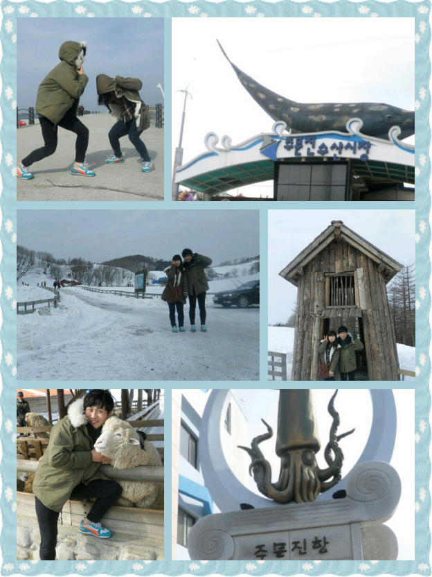 여행자클럽은 첨이라서 버스 도착하기 전까지 혹시라도 놓칠까봐 조마조마했는데 다행히 탑승완료... 뒷자리.옆자리에 처음 뵙는 이모님들???예사롭지 않은 포스를 풍기셨는데 우리 커플 먹을것도 많이 챙겨주시고 입담도 재미나시고..암튼 탁월한 자리 선택을 한 우리 커플!!여행지로 고고씽~~(^_^)/ 대관령 양떼 목장 도착...답답한 도시에만 있다가 확트인 목장을 보니까 속이 뻥뚫리는 느낌..사진 찍는걸 좋아하는 우리커플은 셀수없이 카메라 셔터을 눌러대고 양들에게 건초도 주고 양님한테 헤드락도 걸어보고ㅋㅋㅋ 다음 장소인 주문진항은 그냥 말 그대로 항구!! 떡하니 오징어 조형물도 설치되어 있고 어시장도 있고 건어물도 있고..점심을 해결해야 할 우리는 여기저기 돌아다니다가 호객행위도 많이 당하고ㅠㅠ뭐먹을까 고민하다 결국 회덮밥이랑 물회를 먹었다만..대구보다 가격이 많이 비싼 편이였음,그래도 맛은 있었네요 배도 부르고 뭘 좀 살까 싶어서 건어물 가게로 향했지요ㅋㅋ딱히 살것 없어서 쥐포를 사기로 한 우리..솨!솨!솨! 솰아있네~개인기 한번보여주고 3천원이나 깎았다능..뿌듯했음!! 다음 장소로 이동을 위해 탑승..역시나 포스 이모님들을 입담에 몰래 빵빵 터지면서 마지막 여행코스인 안목해변,커피거리 도착!!커피 안 좋아하는 우리커플에겐 그냥 그런곳이였는데 물도 맑고 모래들도 부드러운 곳으로 기억ㅋㅋ 저희 커플은 모든여행코스 잼나고 신나게 갔다온것 같네요..대관령 양떼목장은 뛰어다니는 양떼보러 봄에 한번 더 가볼려고요 여행지도 이쁘고 좋았고 거기서 만난 이모님들도 좋고 박소현가이드님과 기사님도 친철하고 좋았네요!!이상 끝~