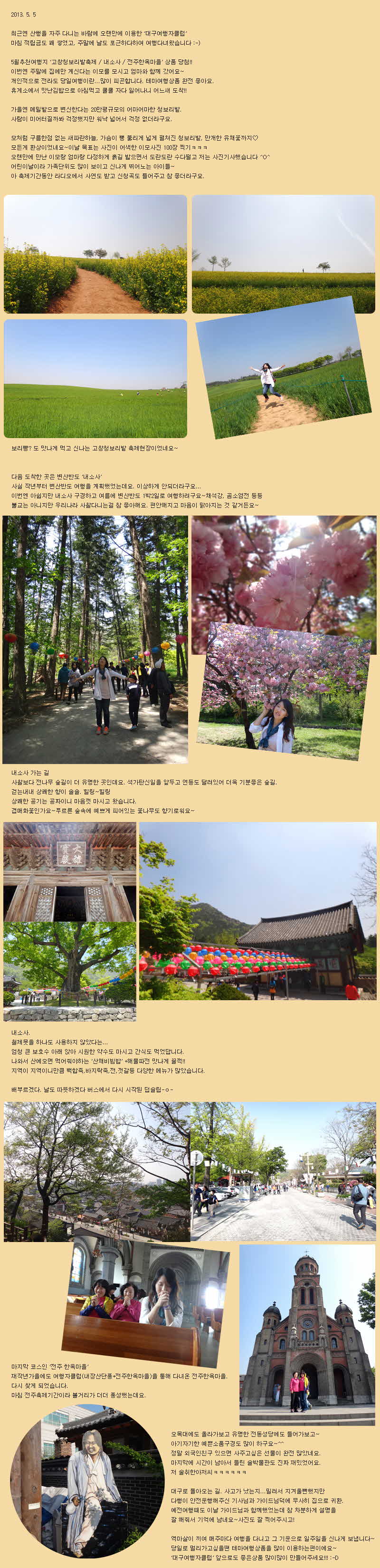 제목 ★어른이 더 신난다★어린이날_고창청보리밭축제/내소사/전주 한옥마을 등록일 13.05.08 조회 458
