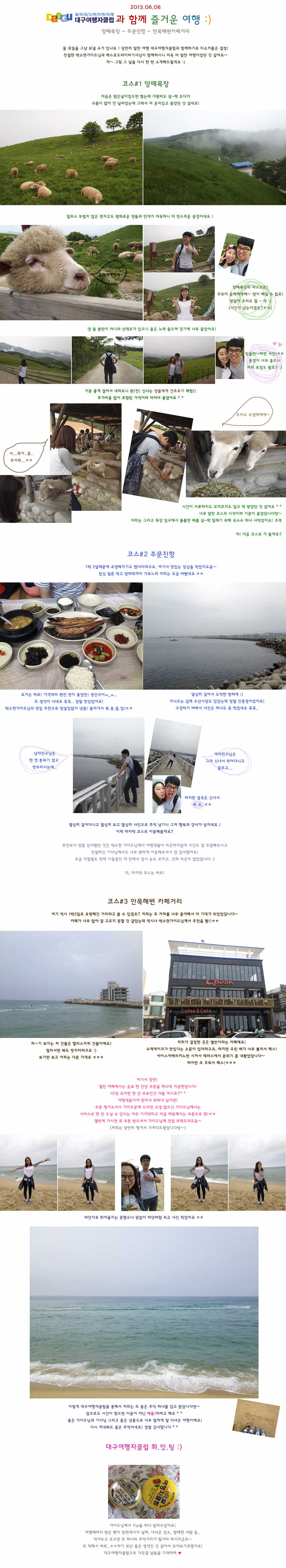제목 6월 6일 양떼목장-주문진항-안목해변카페거리 등록일 13.06.22 조회 519