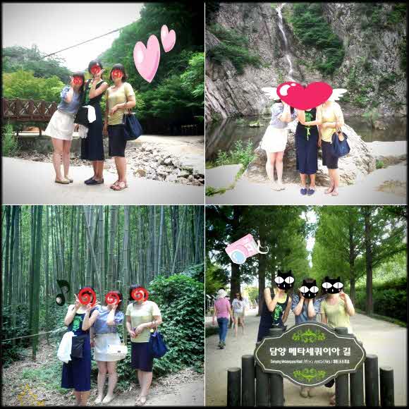 큰맘(?) 먹고 전라남도로 떠났습니다. 대구여행자클럽이 아니였으면 떠날수 없었겠죠??^^ 대구에서 조금 이른 출발 이였지만!! 설레이는 마음으로 담양을 소개해줄 엔돌핀 은정가이드★ 엔돌핀 은정가이드와 함께 제일 먼저 강천사에 도착했어요. 강천사..? 못들어봤는데...... 하면서 정말 생각지도 못한 낙원이였어요 ~~ ^^ 강천사를 등산이 아니라.. 정말 자연 바람을 맞으며 바람이 살랑 살랑~ 불어오고 폭포가 우릴 시원하게해주고!! 여자끼리 갔지만 남자친구와 가도 정말 좋을듯해요 ♥ 힐링하는 기분으로 ~ 산책을 하고 빨강구름다리... 우리 일행 한분은 후덜덜하게 만들었죠 @.@ 정말 무시무시한... 높은 다리!! ^^ 하지만 꼭 건너보세요 빨강구름다리도 건너고 시원한 계곡을 바라보며.. 2번째 도착지는 죽녹원 !! 맛있는.. 떡갈비... 떡갈비.. 꼭 먹지 않아도 된다고 생각은 맛있는 점심을 먹고 죽녹원을 구경했어요 ! ^^ 음.. 그냥 대나무들이 있구나.. 했는데.. 이건 뭐... 말로 설명할 수 없는 풍경이였어요*^^* 정말 멋진 그곳을... 밥집에서 시간을 너무 뺏긴 나머지.. 생각보다 너무 커서 놀라긴 했어요.. ^^ 그리고 마지막 코스!! 메타세쿼이아길.. 말로만 들어봤습니다.. 그런 길이 있는지 ^^ 대박대박대박 ♥♥♥♥♥♥♥♥♥ 정말 낭만적이였어요 !!! ^^ 사진 찍으면 못생긴 내가 아닌.. 예쁜 내가 되는 그곳!! 정말 꼭 한번 가보세요 ~~ ^^ 모든 일정이 너무 마음에 들어서... 글을 잘 쓰진 않지만 전라남도 담양 !!!!!!!!!!!!!!!!!!!!!!!!! 정말 꼭 추천해드리고 싶어요 ~~ 사랑하는 가족! 연인! 친구! 힐링하러 꼭 떠나세요 ★ |
