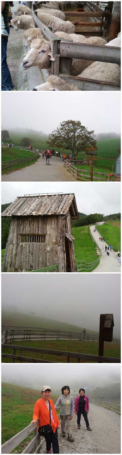 져버리구 코스모스랑 놀다왔어요. 그래도 비가오다 말다 더 운치있는 여행을 만들어 주네요. 이렇게 넓을수가... 온 마을이 메밀밭으로 수놓아져 있었네요. 여유로운시간이니까 이것저것 산책한다 생각허구 골고루 구경하구 더덕구이가 유명하다구 해서 점심 맛나게 먹구 다음장소인 대관령양떼목장으로 출발 가는길에 안개가 있어서걱정했는데 목장에 도착하니 바람따라 구름이 움직이네요. 다행이 비가 안와서 촉촉히 물먹은 풀들과 양떼를 감상할 수 있었어요. 목장을 한바퀴돌구 영화촬영지에서 사진도 찍구 양들에게 먹이 주는 시간이 있어서 가까이서 양들을 볼수 있었어요 어찌나 토실토실한지 양은 위가 많다구 가이드님이 얘기하시는 것 같앴어요. 울친구들이 너무 좋아했어요 대구도착 버스에 내릴때 또 언제 갈거냐구 묻더군요. 가족과 같이두 좋구 친구들이랑도 좋구 저의 네번째여행이 이렇게 마무리 되네요 다음날이 되어도 피곤하지 않는것은 힐링이 되었다는 증거겠죠? 다음 행선지를 또 찾아봐야겠어요. 기사님 박소현가이드님 수고하셨어요 담에 또 뵈요. |