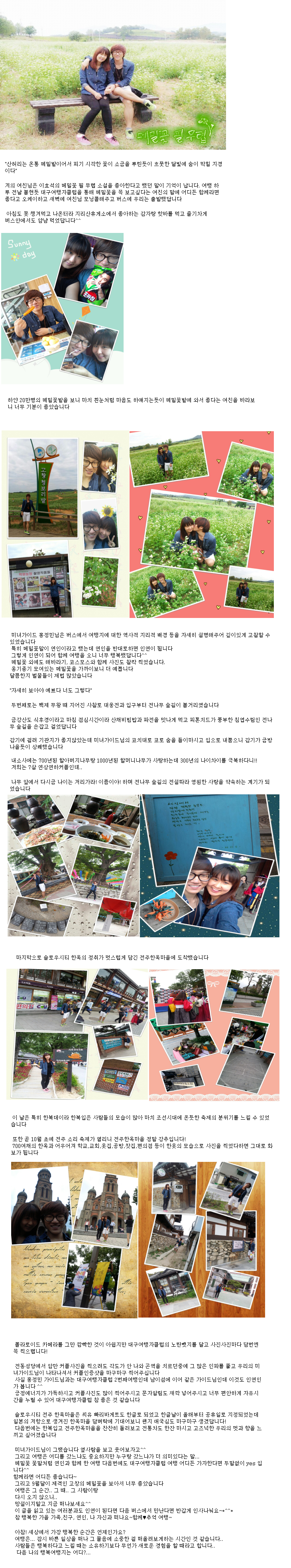 제목 9월 28일 연인과 함께한 학원농장 메밀꽃밭♥천년고찰 내소사♥전주한옥마을 등록일 13.09.30 조회 480