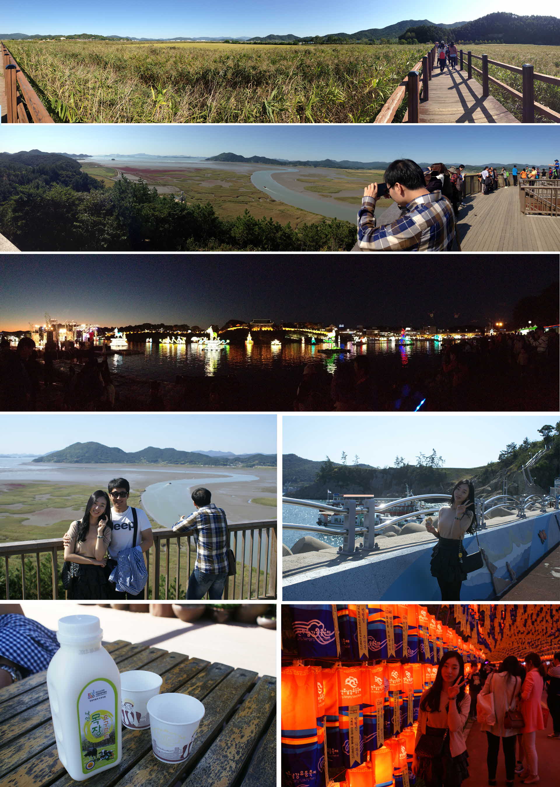 버스를 타고 도착한 순천만은 넓고 큰 스케일로 너무너무 멋졌어요, 근데 아직은 좀 이른감이 있었는지 금빛으로 물든 갈대를 보고팠지만 조금더 지나야 볼수있을듯해요 ㅠ_ ㅠ가도가도 끝없이 이어진 갈대밭을 올라올라 전망대에 도착하면 넓은 대지를 한눈에 볼수있어서 가슴이 탁 트인 느낌을 받을수 있어요. 그리구 내려오면 매점에서 맛있는 유기농 요거트를 맛볼수있어요.한번 맛보면 계속 생각난다는 마법의 요거트! 맛있어요. 오동도에 들어가기전 식당에서 게장정식을 먹고 반찬으로 나옷 갓김치가 넘 맛있어서 오동도에 놀러갔다가 포장해서 사왔어요! 포장도 아이스박스에 꼼꼼하게 해주셔서 냄새없이 잘 들고 올수 있었어요. 그리고 마지막엔 진주남강유등축제 ! 여기저기 둘러보느라 발이 조금 피곤했지만 너무너무 즐거웠던 여행, 가을빛으로 물들면 다시한번 다녀오고싶어요. 그리구 순천만전망대 올라가겠다구 헥헥대고 올라갔다 내려오는 벤치에 잠시 쉬고있을때, 커피를 선물로 선사해주신 파이팅넘치는 친절한 이은정 가이드님, 생명수로 잘 마셨어요 !!! 너무너무 감사해요> ㅁ< 대구여행자클럽 화이팅 ! |