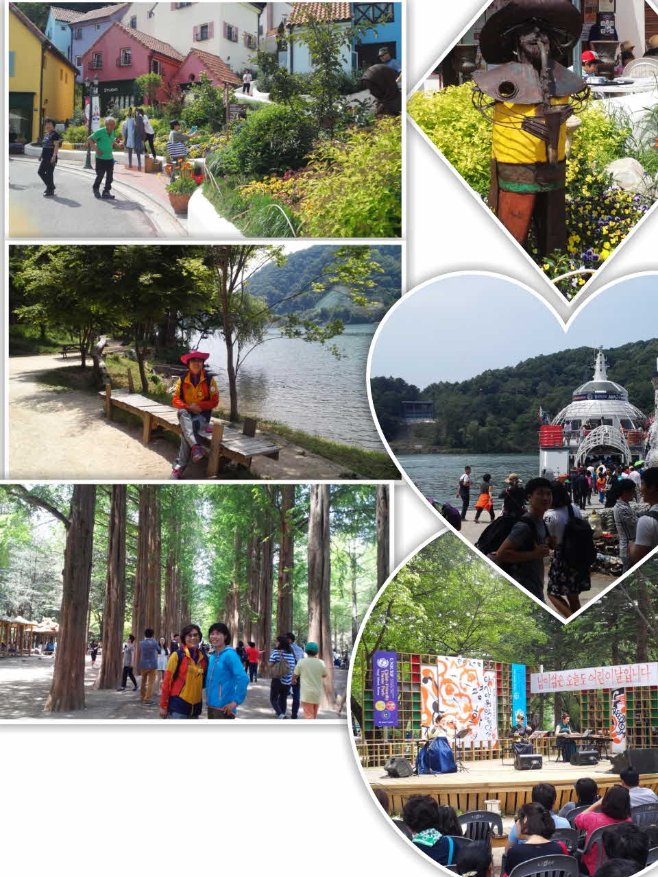 레저 스포츠 하시는 모습도 일품이고 공연도보고 많은 조형물도 있고 자전거로 섬 전체를 돌아 다녀도 되고 유유자적 걸어 다니며 벤치에 앉아서 차를 마셔도 좋은곳 연인들도 데이트 하기좋은곳 가족끼리야유회해도 좋인곳 가보시면 오길 잘했다 싶어요 두번째 도착한곳은 쁘띠프랑스 동화 속에 들어온 느낌이요 애들 데리고 가서 사진 찍어 주면 동화속 주인공이 된듯한 곳입니다 매달 여행자 클럽과 함께한 여행이 즐겁고 편안한 생각이 들어 참 좋습니다 |