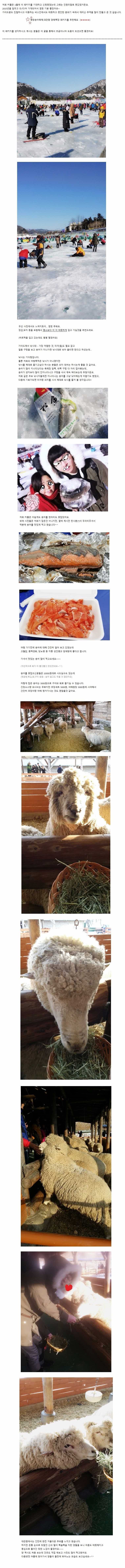 제목 ★☆평창송어축제/대관령양떼목장 후기☆★ 등록일 14.12.22 조회 457