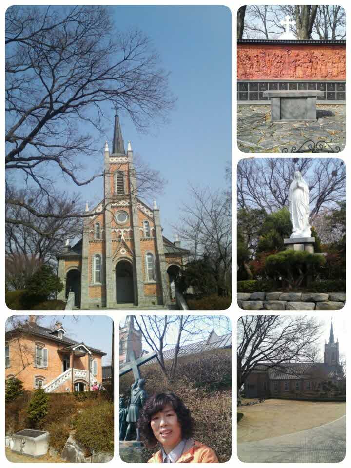 대한민국을 대표하는 가장 아름다운 성당이라고 가이드가 설명해주었다 차에서 내려 성당 입구에 들어서는 순간 너무 아름답고 아늑하게 느껴졌다 미사 시간과 겹쳐서 내부를 볼수 없는게 아쉬웠다 고딕 양식의성당 건물과 큰 나무가 어울어져서 성당의 운치를 더 해준다. |
