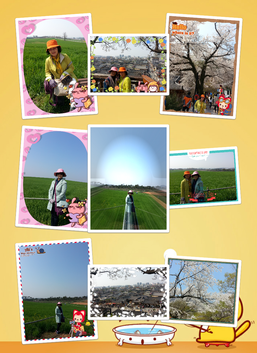 현명한 사람은 여행을한다 *** 이쁘고 애교 넘치는 이상정 가이드 한 마디 ~~~ 가자 !!! 가보자하고 맘은있는데 주부라는 이유가 늘 발목이잡힌다 하지만 여행자 클럽을 알고난뒤 누구와가 아니여도 혼자라도 떠날수 있는 용기가 생겼다 이번엔 늘~~친언니같은 센타언니와 푸르름 맘껏즐기고 노오란 유채꽃과 아직까지 기다려준 벚꽃으로 눈으론 황홀함을 맘으론 추억에 한페지를 ~~~ 객지로 직장가기전 여행자 클럽과 인연 만들어준 나에 분신한테도 느므느므 고맙다 ~~ 아들 ~~ 엄마 이번엔 고창 청보리밭길 ~~내변산 내소사 전주 한옥마을 잘갔다 왔단다 회원 가입 해주고 여행할수있게 용기주어 고맙어~~ 열심히 휴가모아 울식구들 또 뭉치자 흔들리지 아니하고 피는 꽃이 없듯이 조금은 피곤해도 금방 잊고 또 나설때 없나시퍼 살핍니다 또다른 목적을 위해 또 떠나볼렵니다 톡 톡 매력넘치는 가이드님과 오고가는 동안 안전운행 해주신 기사님께도 감사드립니다 꾸 !!!!!! 벅 |