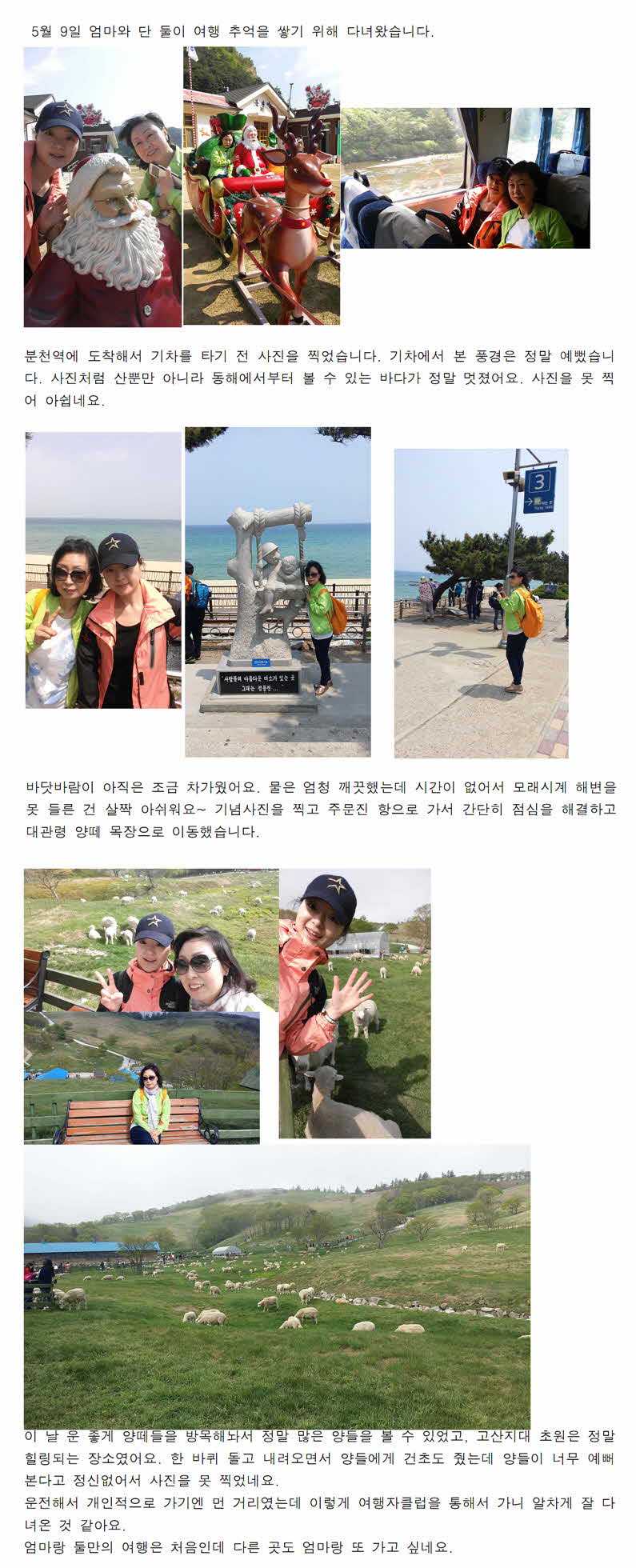 제목 강릉 정동진, 대관령 양떼목장 등록일 15.05.14 조회 424