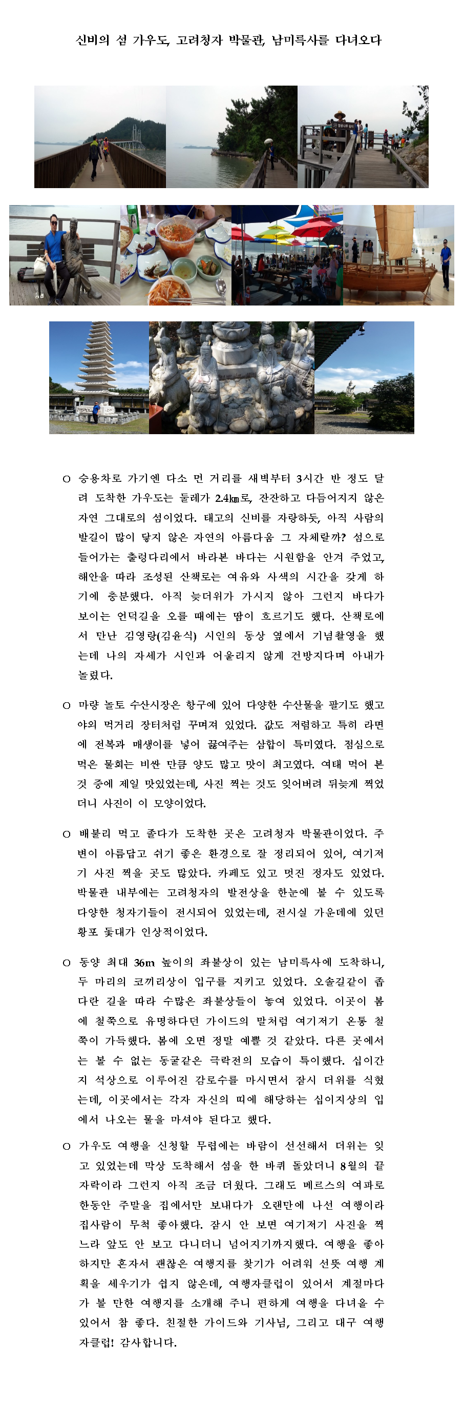 제목 신비의 섬 가우도, 고려청자 박물관, 남미륵사를 다녀오다(8. 29) 등록일 15.09.01 조회 949
