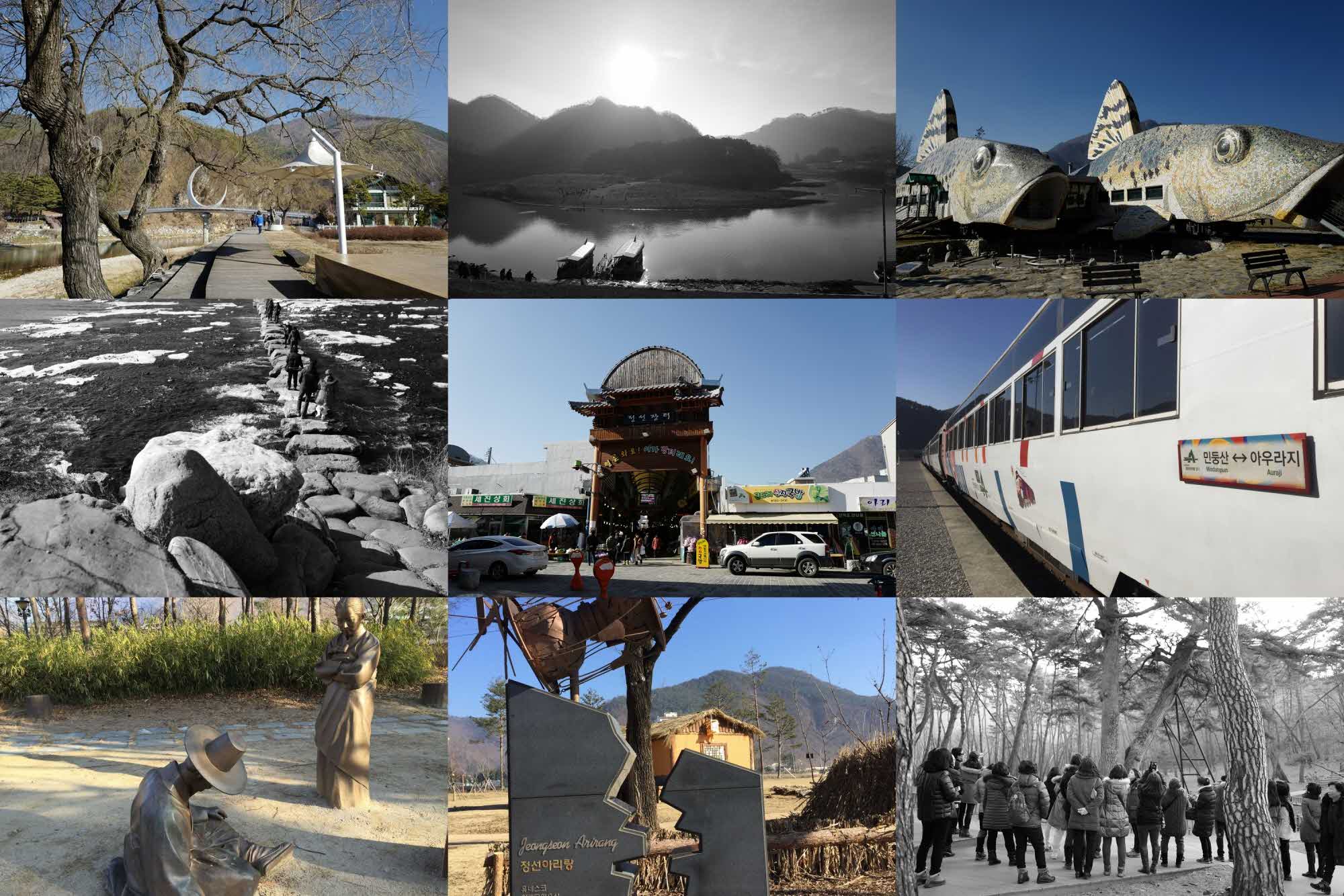 새벽에 멀리서 달려오는 빨간 클럽버스를 보니 기쁘더라. 첫여행때는 어떨까 좀 긴장했는데 두번째가 되니 편하고 설렜다. 차를 타고 정선으로~~ 강추위가 풀려서 여행날은 날씨도 포근하고 햇살도 좋고 공기도 맑아서 정말 좋았다. 친절하고 유쾌하신 가이드에 따르면 정선은 천미터가 넘은 산이 스물두개나 있어서,거기 사시는 분들은 "야 날 좋다. 이산 저산 빨랫줄 걸고 빨래 널면 잘 마르겠다' 이러신단다. 정선의 산들은 높고 많아도 험해보이지 않고 순하고 친근해보인다. 박지원의 양반전 배경인 정선 아라리촌에는 이 소설을 주제로 한 조형물들이 있는데, 스토리가 있는 공간이라 여기서 사진찍는 재미도 쏠쏠했고 다들 즐거워보였다. 오일장에서는 시장구경, 전통 먹거리로 맛있는 점심을 먹고, 정선아리랑 공연 구경도 하고, 이거저거 장도 본다. 사연을 간직한 아름다운 아우라지강에 가서 놀다가 기차를 타고 민둥산으로 가는데, 기차는 역시 언제나 낭만이 있다. 중간중간 간이역에 내려서 후다닥 간식도 사먹고 사진도 찍고. 오는 길에 잠깐이지만 배를 타고 청룡포를 가서 잘자란 소나무길을 걸으며 단종의 이야기도 보고 듣는데 아는 이야기라도 막상 현지에서 들으니 새롭다. 토요일 하루. 혼자 가기는 어려운 길. 클럽에서 같이 다니니 편하고 즐거운 소풍같은 여행이 되었다.