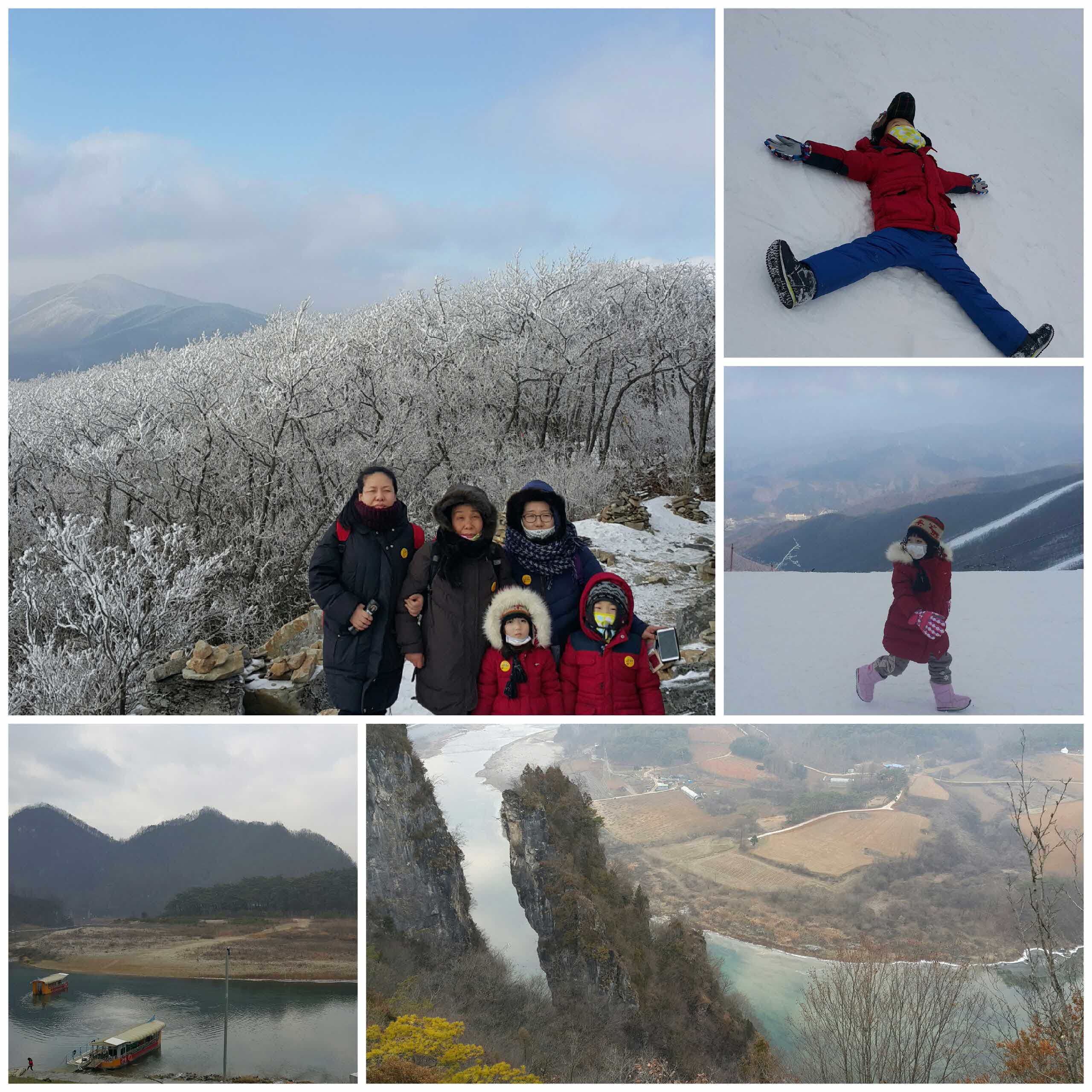 단군의 유배지.. 이곳역시 도착하기전 가이드님의 간단한 설명은 홀로 그곳의 외로움을 견뎌야했던 어린단군의 처지를 더욱 슬프게 느끼기에 충분했다 멀리 보이는 통통배를 보며 총총거리며 뛰어가는 우리예슬이 예슬이 생애 첫 배....ㅎㅎㅎㅎ 3분이다...-_-;; 그래도 어린예슬이 기억에는 3분이란 시간은 중요하지 않을 정도로..배에 몸을 실고있는 그자체 만으로도 신기했을것이다. 배를 타고 들어간 청령포...정말이지 배가 아니면 나올수없을 정도로...하나의 섬처럼 느껴지는 청령포 유배지로는..-_-;; 죄송하지만....딱..이었음을... 그곳을 쭈욱 둘러보며 느꼈다... 세번째 무궁화호 협곡열차... 사실 제일 아쉬웠던 코스가 아닐런지..ㅠㅠ 올겨울은 유난히 따뜻하여 강원도에도 우리가 간 그날은 눈이 많이 내려있지않아....창문밖의 풍경은..우리의 눈 을 사로잡진 못했다..그래도 옛추억을 생각하며 새벽부터 준비해온 삶은 달걀과 사이다로 오순도순 얘기하며 기차여행을 마무리하고...... 오늘의 하이라이트...하이원의 눈꽃......과연볼수있을지 눈이 쌓이질않아..ㅠ.ㅠ 다음을 기약해야되는건 아닌지.. 걱정반..기대감반으로 하이원으로 출발했다.. 네번째 코스 강원도 정선 하이원 곤돌라 눈꽃여행 역시 우리 어린 예슬이 곤돌라를 탄다는 생각에 벌써부터 설레임과 두근거림이 얼굴에 다 묻어난다. 곤도라는 40분 타게되는데 이것때문인지...여행경비로 지불한 금액이 전혀 아깝지않 았다...ㅎㅎㅎ-_-;;그만큼 곤돌라를 오래탄다는거... 곤돌라를 타고 마운틴탑의 정상에 다다를때쯤 하얀눈꽃이 보이기 시작했다....역시...높은곳엔 내린눈이 녹질않아서 기대했던 눈꽃을 맘껏 볼수있었다. 하얀 눈이 소복히 감싸안은 그곳의 풍경은 표현이 힘들정도로너무 아름다웠고 떼묻지않은 하얀색은 우리가족의 감탄을 연발하게 만들었다 소복소복 밟히는 눈소리에 예슬이와..함께 한 동생내외 조카 친정엄마..우리모두를 어린아이로 만들어놓았고 모두들...흰눈이 오는날 특히나 더 날뛰는 멍멍이 처럼? -_-;;; 뛰어놀기 바빴다..눈싸움은 당연하고 눈위를 뒹굴 고 뿌리고 뭉친눈을 던지고....ㅎㅏ염없이 놀다보니.. 그제서야 눈에 들어오는 스키와 보드타는 사람들.... 멋진 풍경에 마지막 곤돌라를 타고 집결지에 모이기 한시간전 간단히 눈썰매를 타고 다시 대구로 오는 버스에 몸을실었다......그리곤 다들..기절..눈뜨니 대구..