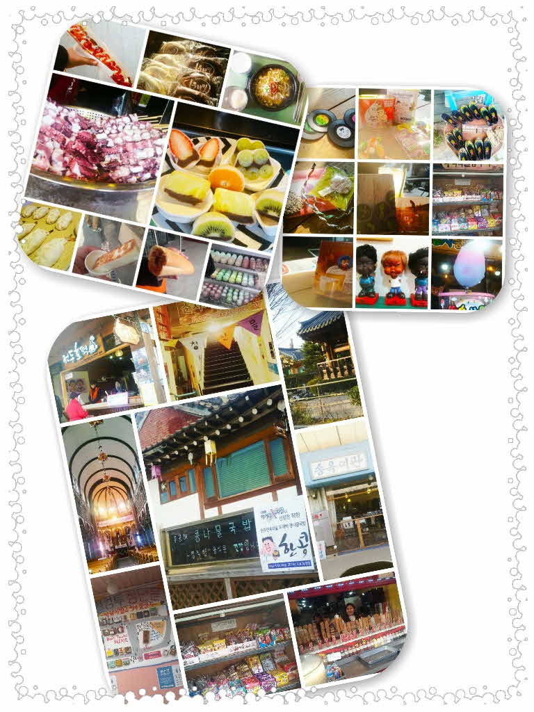와~버스에는 이미 사람이 만원이였어요~ 제목과 같이 먹방투어다보니 먹거리도다양하고 많이 먹을수있을까?! 입이 호강하겠다 생각으로 어디에서 뭘먹을지 전날부터 행복한고민이 시작~♪룰루랄라~♬ 일정과 함께 지도를주셔서 체크해주신대로다녔어요~^^ 차에서 내려 오목대에서 내려다보니 한옥전경이 보이면서 먹거리가많다보니 여기저기 음식냄새가 스멀스멀~ 저흰 전동성당부터갔었어요~ 사람들이바글바글~ 천주교인은아니지만 3대성당이여서 사진을 찍고나와서 본격적 배를채우기시작~♪ 새우만두,과일찹쌀모찌, 문꼬치,치즈구이,콩나물국밥등 다양하게 먹은후 지도상그려진 청년몰 구경 하고 아기자기한 소품들 구입하고 돌아오는길어 이쁜벽화마다 사진 찍었어요~ 골목마다 다니는길목마다 알록달록 한복입고 쪽두리에 머리땋은 이쁜여자들과 멋스런 남자들과 70년대교복입고다니는 남녀들이 즐비합니다~^^ 한복대여가 한시간에 몇천원하더라고요~ 글고 그걸입고 식당가면 할인도해준다고하네요~ 저는 입진안았지만 친구들이랑간다면 재밌는추억이될꺼같아요~중간에 귀신의집이있었는데 여학생이 펑펑울고나와서 귀신분장하신분 밖에 뛰어나와보시더라고요~귀신분장한분 걱정하시는모습보고 한참 웃었네요~ 그리고 한지로 만든 액자너무탐이나더라고요~ 사고싶었는데 먹는데너무심취해서 사진못했네요~ 즐거운 주말 전주한옥마을에서 웃으며 배부르게먹고 사진마니찍고 왔어요ㅎ 올때는 풍년제과 쵸코파이 여러상자 사와서 온가족과 맛있게 먹고 글남겨요~ ^^ |