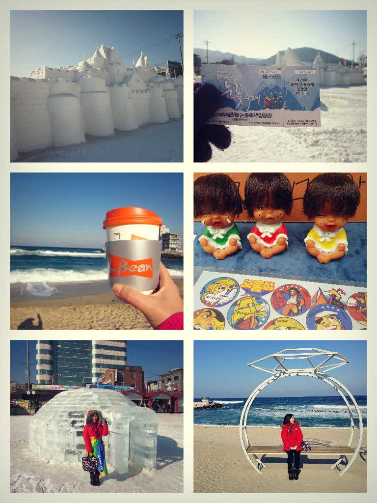 한파속에 망설이다 눈꽃축제 여행을 다녀왔습니다. 지난 2주간 드라마에 빠져 허우적대다가 드라마도 종영했겠다 다시 여행을 가볼까 하고 추울때 제맛일거 같아 대관령 여행을 왔는데 어찌나 춥던지 핫팩과 방한복 어그로 무장을 해도 내려서 시간을 어떻게 보낼까 난감했습니다. 그러나! 설원에서 만난 신기한 경험. 오늘 김덕수 노리패의 공연을 앞두고 음향 테스트한다고 앰프에서 걸그룹 노래가 빵빵나오는데 가사가 어찌나 예쁘던지 (아!츄! 재채기가 난대네요 ㅎㅎ) 넋을 놓고 듣다보니 영하의 날씨인데도 마음이 따뜻해지고 나도모르게 어깨춤을 추게 되더군요. 하얀 설경에 음악 하나가 이렇게 또 나를 감성깡패로 만들어놓고 잠시뒤 추억 체험장 비닐 하우스 건물안에서는 1989년 추억의 소품들이 나를 반겨 몸도 녹이고 시간도 잘 보냈습니다. 그리고 주문진항에서는 생선구이 먹고 하고 싶은거 다 해보고 대구로 왔어요 오늘 박도현 가이드님 수습가이드님 새해 복 많이 받으세요!!!!!! |