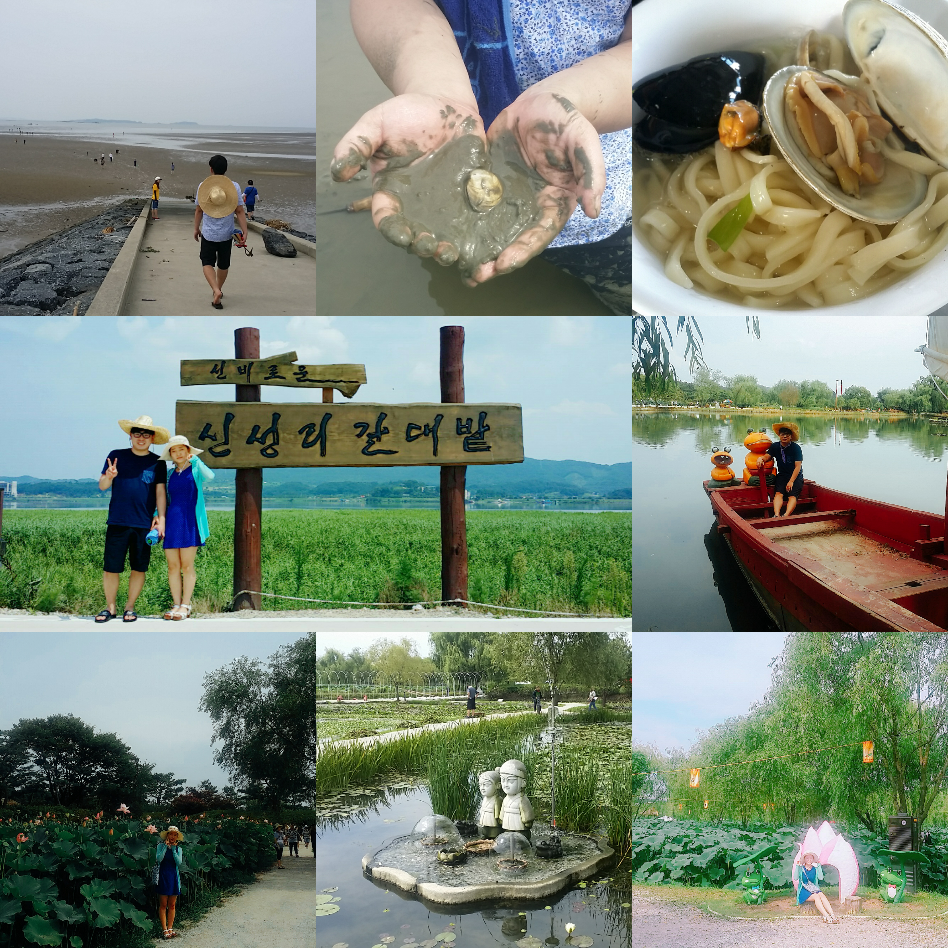 이번여름휴가에 대구여행자클럽통해서 남자친구랑 2번 여행을 갔는데요 2번째 여행으로 서천갯벌체험을갔어요 ^^ *첫번째코스 충남서천갯벌체험 ! 충남 서천에 도착하니 많이 더울줄알았는데 생각보다 시원했어요 갯벌을 사실 처음가봤는데 바닷물이 밀려나서 갯벌만있는거보니 신기하더라고요 ㅎ 호미챙기고 장화는 갯벌앞에서 대여해서 준비하고갔어요 ㅎ 계속안쪽으로 쭉 걸어서 꽤많이 들어갔는데 20분가까이동안은 하나도 없더라고요 ㅠ,ㅠ 20분좀더 지나서 첨으로 조개하나를 찾았어요 ㅎ 조금씩이동하면서 계속 호미질하면서 찾았는데 같이여행온 다른분들은 꽤많이 캔거같던데 의욕은 넘쳤는데 생각보다 많이 못캐서 아쉬웠어요 1시간조금더넘게하면서 ㅎ 작은 고등이랑 조개랑해서 10개조금더넘게 캤어요 ㅎㅎ 첨에 짐맡겼던식당에서 간단하게 씻고 옷갈아입고 조개칼국수시켰는데 갯벌갔다와서 그런지 김치랑 정말 꿀맛이었어요 ㅎ 우리가 캔 조개보다 칼국수에 조개가 훨씬많았어요 ㅎ *두번째코스 갈대밭은 오자마자 입구에 " 신성리갈대밭"커다란 팻말앞에서 가이드님이 사진도 이쁘게 잘찍어주셨어요 ㅎ 커플사진한컷찍고 여름이라서 푸른갈대들이있었는데 키가 사람키보다 많이크더라고요 ㅎ갈대앞에서 한컷찍고 ㅎ 앞에 2층카페에서 커피한잔하면서 쉬었어요 *세번째코스* 가이드님이 궁남지지도를 문자로 주셔서 길 안헤매고 잘찾아서 볼수있었어요 생각보다 되게 넒었어요 ^^ 도착해서 보니 꽂이피어있는 키큰 연꽂들이 가득했어요 ㅎ연꽃에 꽂이 활짝피어잇었는데 너무이뻤어요 길을 돌아 선화공주랑 서동이 연못에 동상이 있었는데 조그만한 동상앞에 연꽂모양의 그릇이있었는데 연꽂안에 동전이 들어가면사랑이 이루어진다고^^;; 한번 던져보았는데 옆에 개구리동상에 튕겨나가버렸네요 ㅎ재미로한번던져봐도 재밌을거같아요 ㅎ 조금더들어가니 큰 연못이있고 포룡정이라고 큰 정자가보였어요 정자있는연못을 도니깐 돛단배가 한개 있었는데 뒤에 포룡정도 나오고 경치가 좋아서 사진찍었는데 잘나왓어요 ㅎ 길을 따라 가보니 선화공주 랑 서동 동상도있어서 구경도하고 ,그늘에있는그네의자에서도 조금씩 쉴수있었어요 바람도 좀 불어서 시원했어요 ㅎ 가다보니 연꽂있는연못근처에 오리도있어서신기햇어요 궁남지가 볼것도 많고 이뻤던거같아요 마지막 궁남지까지 구경하고 아쉽지만여행마치고