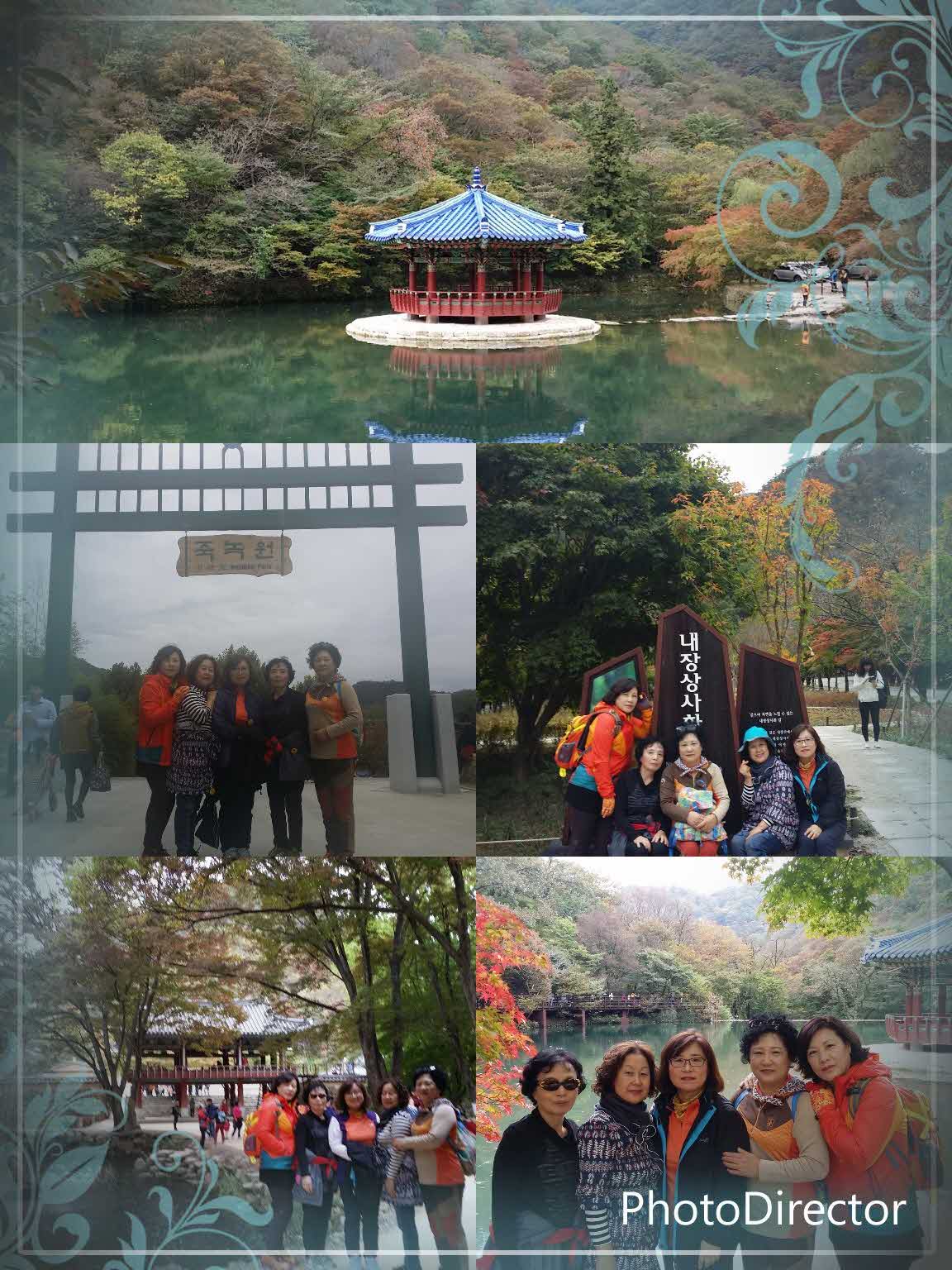 단풍이 아직은 이른감이 있어 조금 아쉽긴 했지만 담을 기약하고 내려와서 절도 구경하고 가이드님의 배려로 단체사진도 찍었어요 다시 일주문방향으로 지나니 우화정이 있는 호수는 넘 예뻐서 즐겁게 사진에 담고 걸어서 내려가는데 흙길도 넘 걷기 좋았어요 정말 빨간 단풍을 많이 보지 못한것이 넘 아쉬워서 한번 더 오고 싶네요11월첫주면 정말 예쁠듯.. 주차장근처 식당서 산채비빕밥하고 파전 맛있게 먹고 다시 죽녹원으로 이동했어요 흐려서 조금 어두웠지만 한바퀴 돌고 오긴 좋았답니다 차도 안밀리고 안전 운전해주신기사님,꼼꼼히 일일이문자주고 열성적으로 가이드해주신 이지훈가이드도 고마워요 ~~ 즐거운 여행이었어요 |