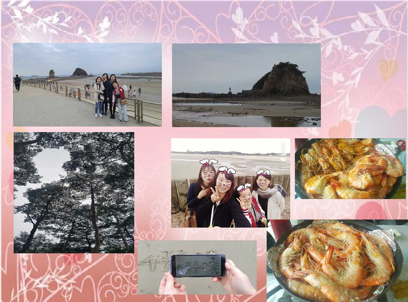 대학 동창들과 함께~~ 여자 4명이서 얼마나 설레던지.... 안면암과 꽃지해변은 가이드님 말씀대로 고즈넉한 매력이 넘치는 곳이 아닌가 생각이 드네요.. 조용히 길을 걷다보니 지금 제가 갖고 있는 고민도 싹 잊을만큼 좋았습니다~ 대망의 안면도 대하 !!!! 그리고 자연휴양림~ 굳이 산 탈 필요 없다고 하셔서 조용한 평지에서 편안하게 피톤치드 듬뿍 마시면서 왔습니다~~~ 엄청 자주 가는건 아니지만 이따금씩 평일 여행이 가고싶을땐 늘 이용하는 대구여행자 클럽이에요~~