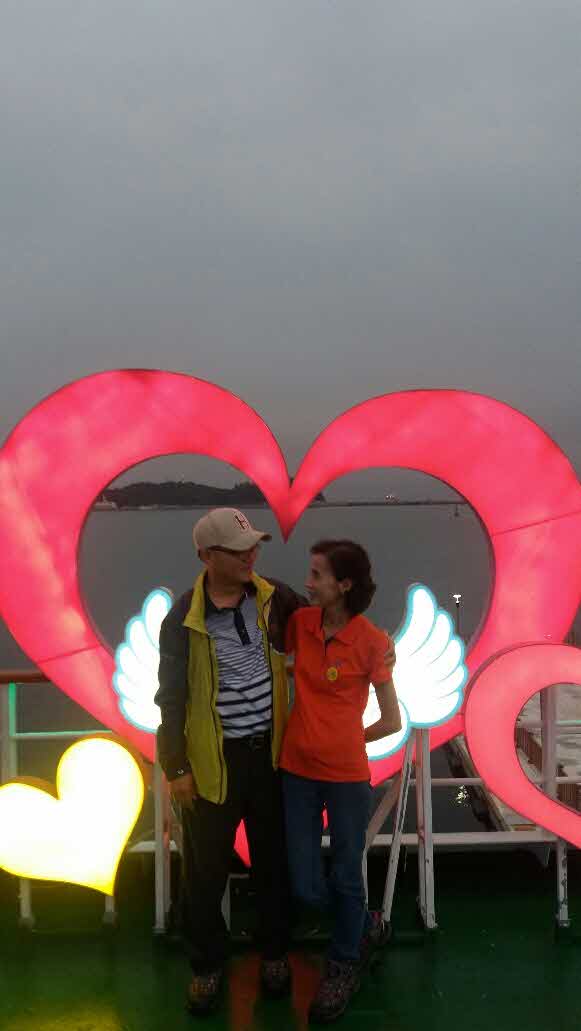 몇 년 전 여수 엑스포 행사 때 낮 쿠르즈 이용 해 봤지만, 야간 쿠르즈 여행은 새로운 느낌의 여행의 즐거움을 주었습니다. 사실 비 때문에 전날까지 마음 졸였는데, 여수 도착하니, 비도 그치고, 구름으로 무더위도 식히고, 잘 구경하였습니다. 여행사를 통하여 가는 여행의 문제점은 기상 상태를 예견 할 수 없다는 점입니다. 그래도 늦은 밤까지 편안하게 안전 운전 해 주신 2 호 차 기사 분께 깊이 감사 드립니다. 누군가가 문뜩 어딘가 훌쩍 떠나고 싶을 때, 꼭 한번 가봐야 할 곳으로 대구 여행자 클럽 상품, 여수 밤바다 미남 쿠르즈 여행을 추천 해주고 싶습니다. 감사합니다. 사진:우리 가이드(박현학)가 찍어준 미남 쿠르즈 선 4층 선상 포토존에서 2017.08.15(화)