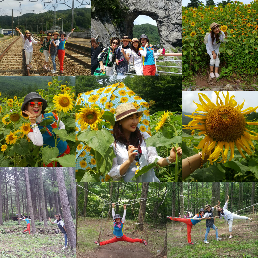 태백 해바라기라니?설레이는 맘으로 대구여행자클럽을 통해 여자 네명의 여행은 이렇게 시작되었다 해바라기가 기다리는 강원도태백을 만나기 전에 이미 협곡열차안에서의 느린 여행은 마치 고교시절로 돌아간듯 너무 즐거웠고 어릴적 추억으로 되돌아간 타임머신같았다 무궁화 열차안에서 삶은 달걀과 닭똥집을 먹으며 마냥 즐거웠고 허미정가이드님의 친절한 설명과 우리 넷의 전속사진사(?)를 자처하신듯 우리의 흥을 잘 살려주셔서 너무 고마웠다 마침내 태백해바라기 군락지에 도착했을때엔 저절로 감탄사가 나오는게 아닌가? 해바라기가 이렇게 많이 피어있는 건 처음보는 광경이다 때이른 코스모스도 함께 꽃단장을 하고있어 여름과 가을 두 계절을 누린 기분이다 네 명의 여인은 어린아이처럼 너무너무 즐거워했고 이렇게 잊지못할 추억을 선사해준 대구여행자클럽에게 무한 감사하다 동굴여행을 마지막으로 태백해바라기여행은 이렇게 막을 내리니 아쉬움을 뒤로 한채 다음 여행을 또 기약해본다