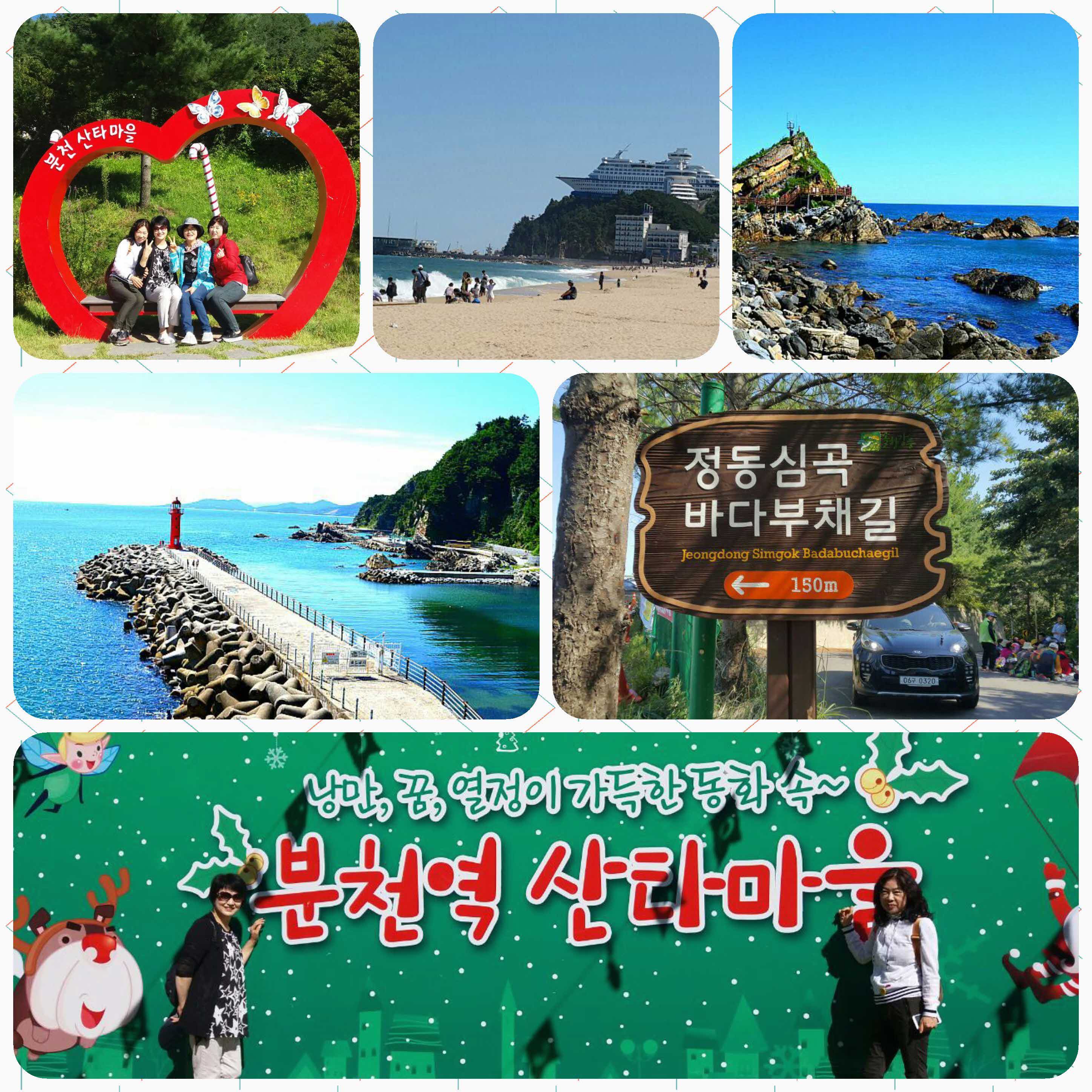 여행은 어디를 가느냐 보다 누구와 가느냐가 더 중요 하다네. ㅎㅎ그럼 좋은 사람들과 좋은곳을 여행 한다면 금상첨화 겠지. 참으로 오랜만에 추억의 무궁화 열차 타고 친구들과 가지고 간 맛있는 간식 서로 나누어 먹으며 또 하나의 추억을 만들고 왔다. 기승을 부리던 불볕 더위도 계절 앞에서는 맥을 못추고 한풀 꺾여서 가을의 문턱에서 부채길 여행은 마냥 행복하기만 했다. 정동심곡 바다 부채길은 2300만년전 지각변동을 관찰할수 있는 국내 유일의 해안단구 이며 천연기념물(437호)이란다. 바다를 향해 부채를 펼쳐놓은 모양과 같다해서 부채길이란다. 천혜의 환경자원을 이용한 2.8km의 힐링 트레킹 코스이다. 부채길을 걷다보니 척박한 바위틈새로 부추꽃이 많이도 피어 있었다. 누가 씨를 뿌린 것도 아닐진대 강한 생명력으로 소박한 꽃을 무더기로 피워 보는 이를 감탄케 했다. 하얗게 부서지는 파도소리 들으며 사진도 많이 찍고 친구들과 담소도 나누면서 행복한 여행이였다...^^ 2017, 9. 3 수고해주신 기사님. 박소현 가이드님. 사진도 많이 찍어준 보조 가이드님. 감사한 마음 전합니다..^^