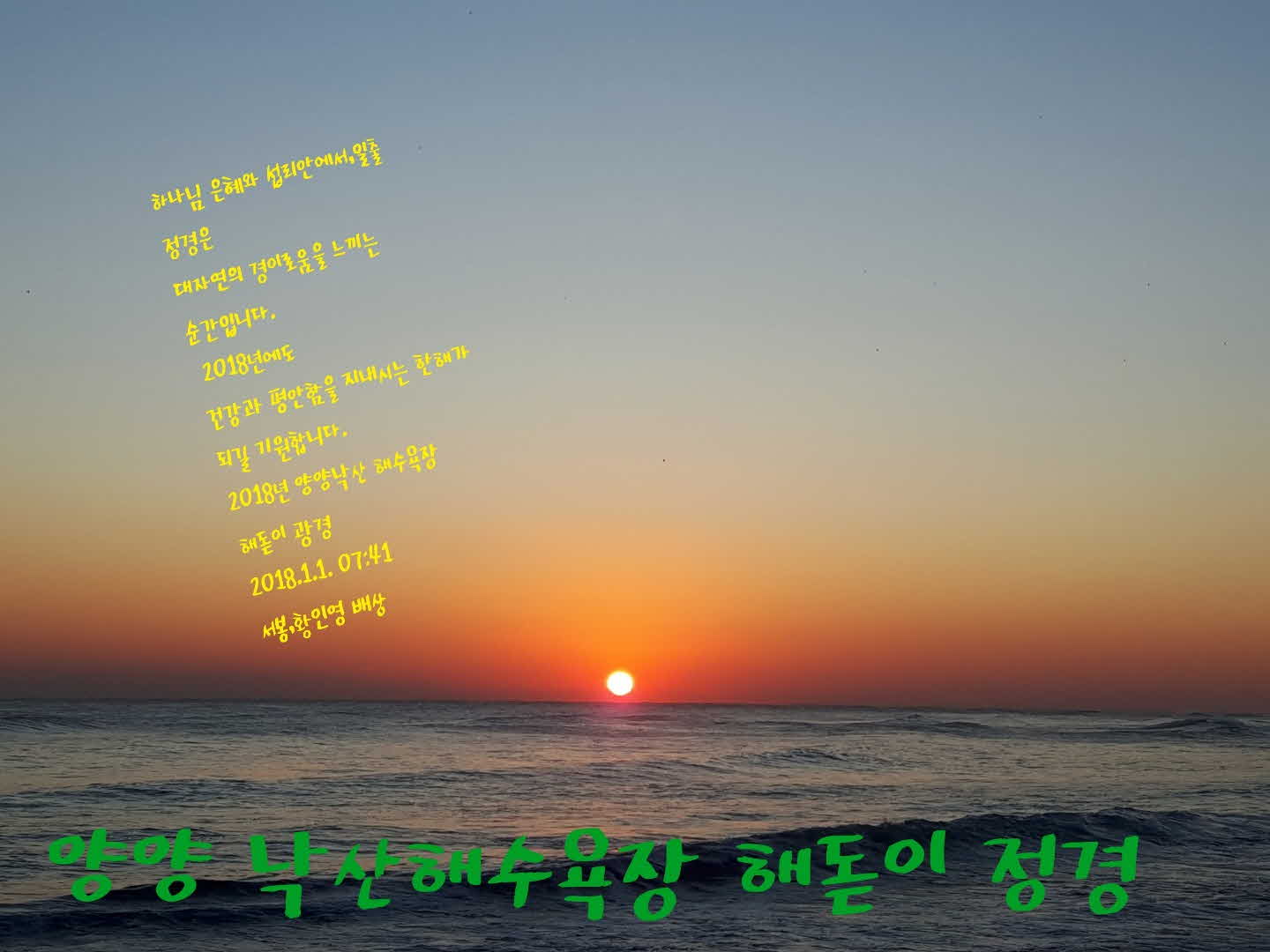 | 제목 | 2018년1월1일 낙산사 해수욕장 해맞이 경이로운 경관 | 등록일 | 18.01.02 | 조회 | 475 |
