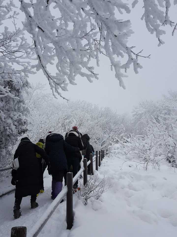 일찍 출발하여서 조금 피곤하기는 하였지만 덕유산에 도착하여서는 정말 꿈속에서의 여행이었다. 즐거운 겨울여행이라서 더 흥미진진했다. 정상에서 본 눈꽃은 세계여행도 부러울게 없었다. 함께한 가이드님과 실습가이드님의 설명으로 역사와 유래를 알수 있는 여행이었다. |