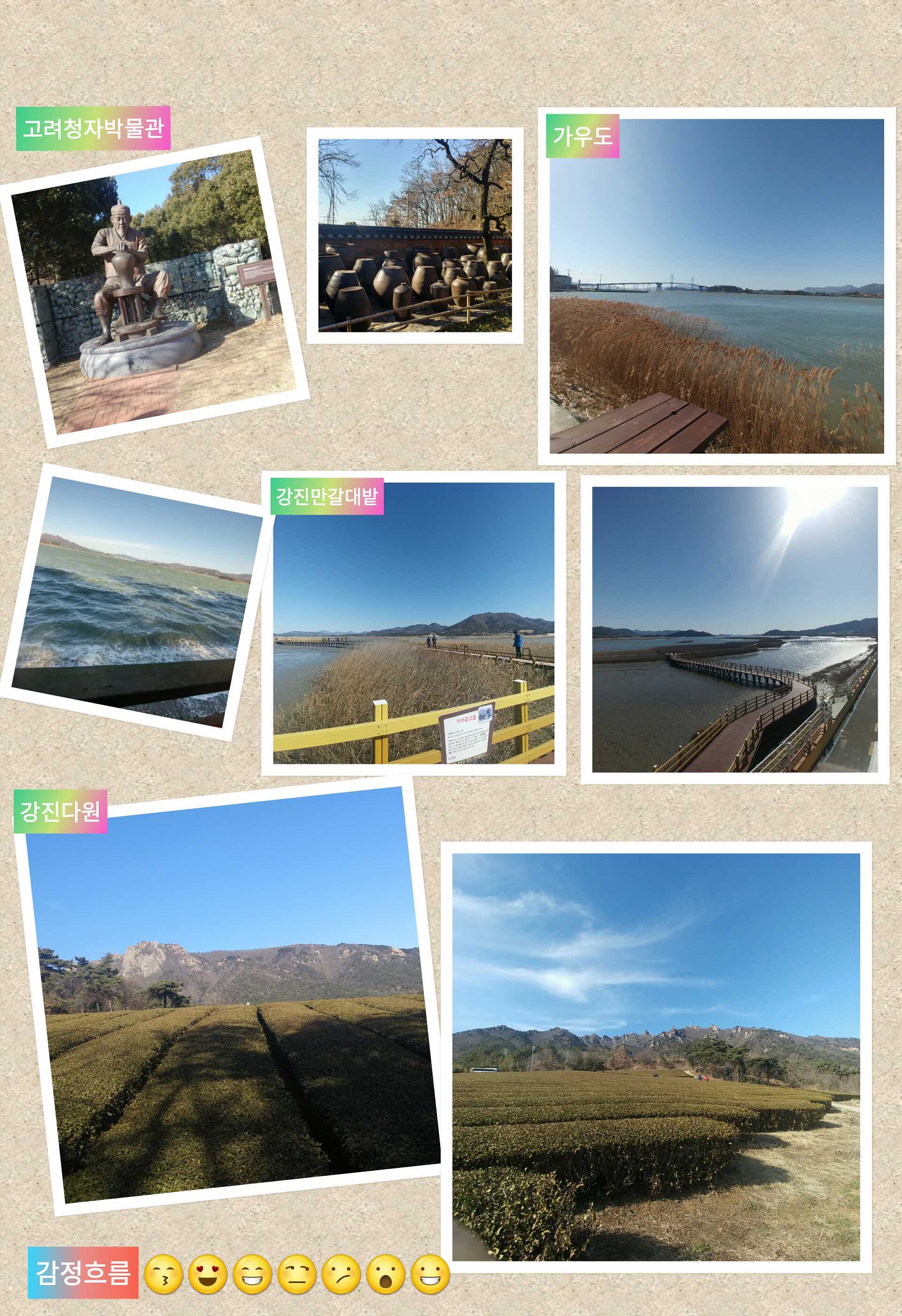 주먹밥과 커피타서 일찍 나왔는데 너무 이른시간 나와 30분 길에서 방황하고 차에 탑승했습니다.ㅎㅎ 특가라 조금은 실망도 있었지만 나름 좋았습니다. 일정은 고려청자박물관-가우도-오감통시장-강진만갈대밭-다원 고려청자박물관-한국의 미의 역사가 오래되었고,깨진 출토품을 잘재현시켜놨다는 생각이 듦 길도 순탄했고, 안전운행 해주신 기사님,친절한 가이드님 감사합니다. |