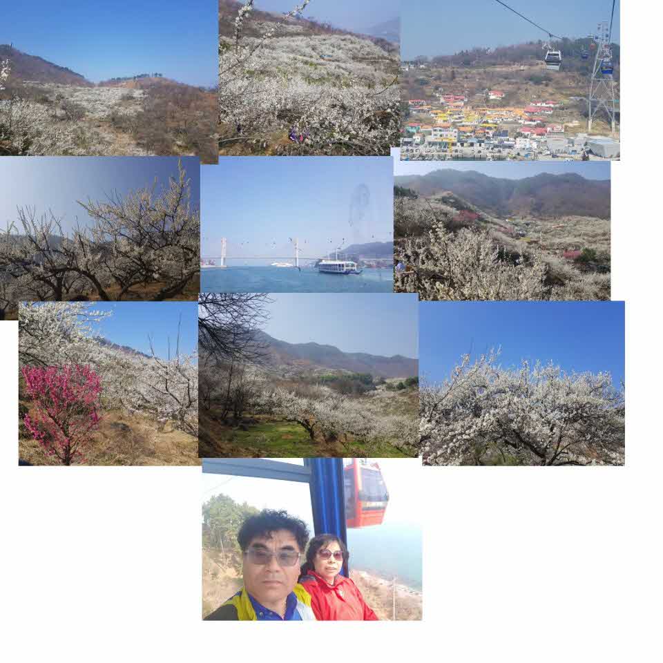 이은민가이드의 자세한안내 덕분에 여행잘마치고 왔답니다. 전국에서 모인 엄청많은 관광객. 매화축제분위기를 더욱 업 시키네요. 산비탈에 심어놓은 매화.곳곳에서 각종 아기지기한 행사. 저히는 수와진의 간이 콘스트에서 cd한장구입 했지요. 차가 많이 밀려서 12시쯤 다음행선지 여수로 1시간 조금넘게달려 해상케이블 왕복탑승하고,개인시간으로 오동도들렸다가 50분정도 유람선탑승으로 여행을 마감. |